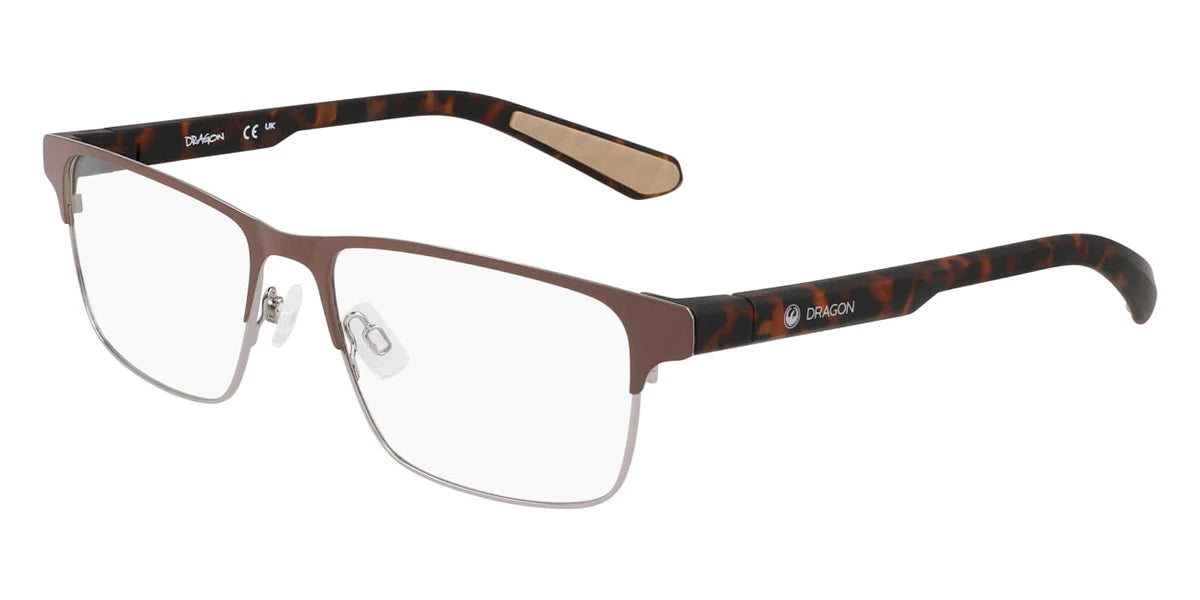 Matte Brown (207) Eyeglasses (DR2052 207 57) by Dragon™. Size: 57-17-145, Shape: Rectangle, Material: Metal.