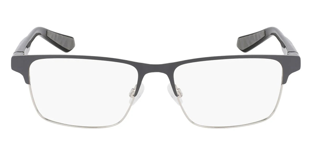 Matte Gray/Bw Benchetler (020) Eyeglasses (DR2052ATH 020 57) by Dragon™. Size: 57-17-145, Shape: Rectangle, Material: Metal.