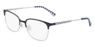 Indigo (414) Eyeglasses (DJ5031 414 52) by Draper James™. Size: 52-17-135, Shape: Rectangle, Material: Metal.
