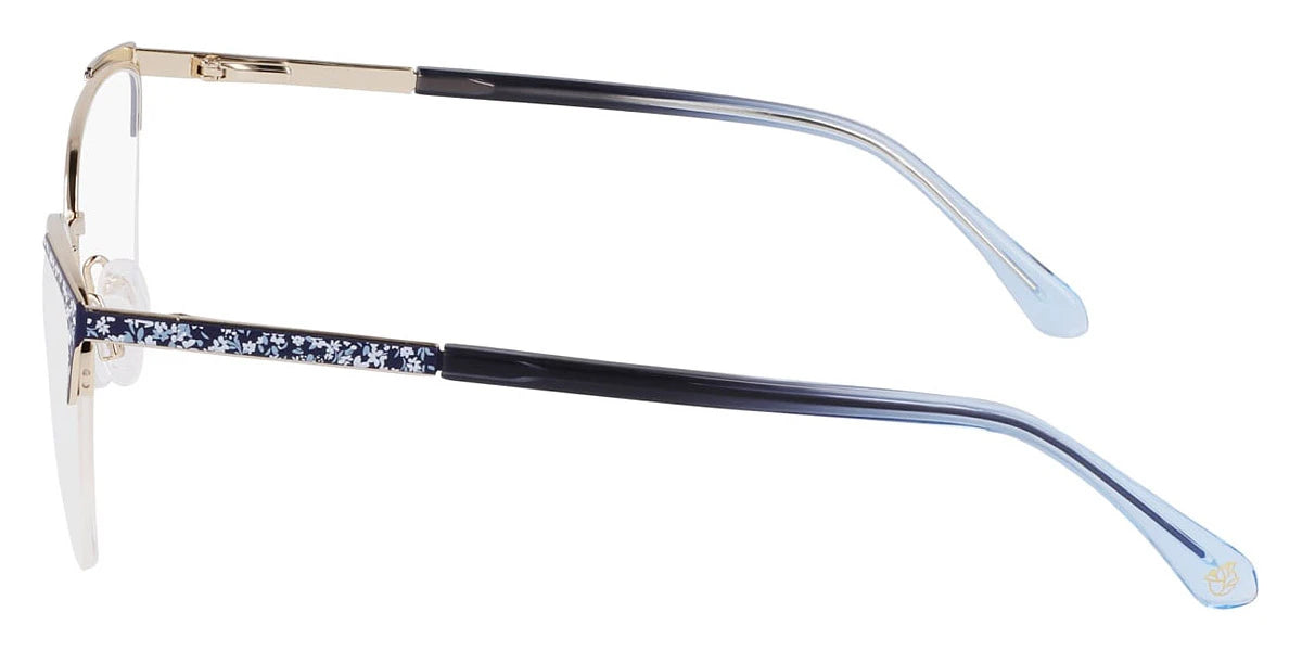 DJ5048 Eyeglasses by Draper James™. The cat-eye shape design feature a semi rimless metal frame. This model is available in six different color combinations and sizes. Launched by Reese Witherspoon, Draper James is an American brand that offers classic and elegant clothes and accessories for contemporary women. The company combines the founder’s love of fashion with the influence of her Southern roots. Every product designed by Draper James is filled with femininity, impeccable style, and sophistication to complete any modern lady’s look. It’s simple to find a great assortment of clothing, from sleepwear to trendy dresses and eye-catching accessories, including bags, belts, and distinctive collections of eyewear. Inspired by the casual look of garden parties, Southern style from Draper James introduces chambray, gingham, and pretty floral prints.