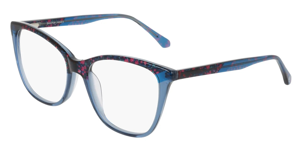 Navy Floral (410) Eyeglasses (DJ5064 410 54) by Draper James™. Size: 54-17-140, Shape: Rectangle, Material: Acetate.