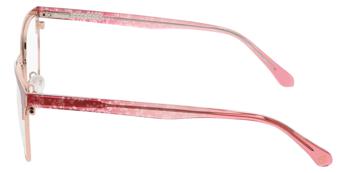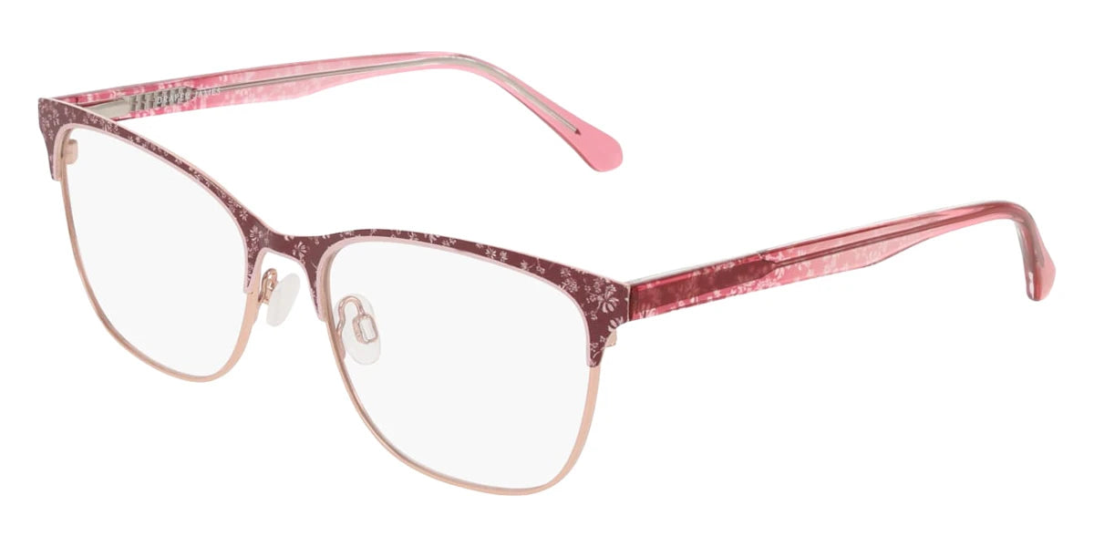 Burgundy Floral (601) Eyeglasses (DJ5065 601 54) by Draper James™. Size: 54-17-140, Shape: Rectangle, Material: Metal.