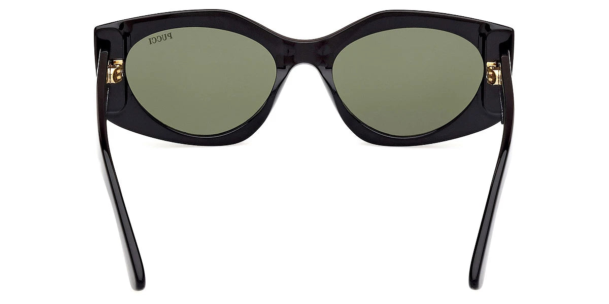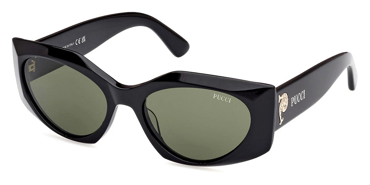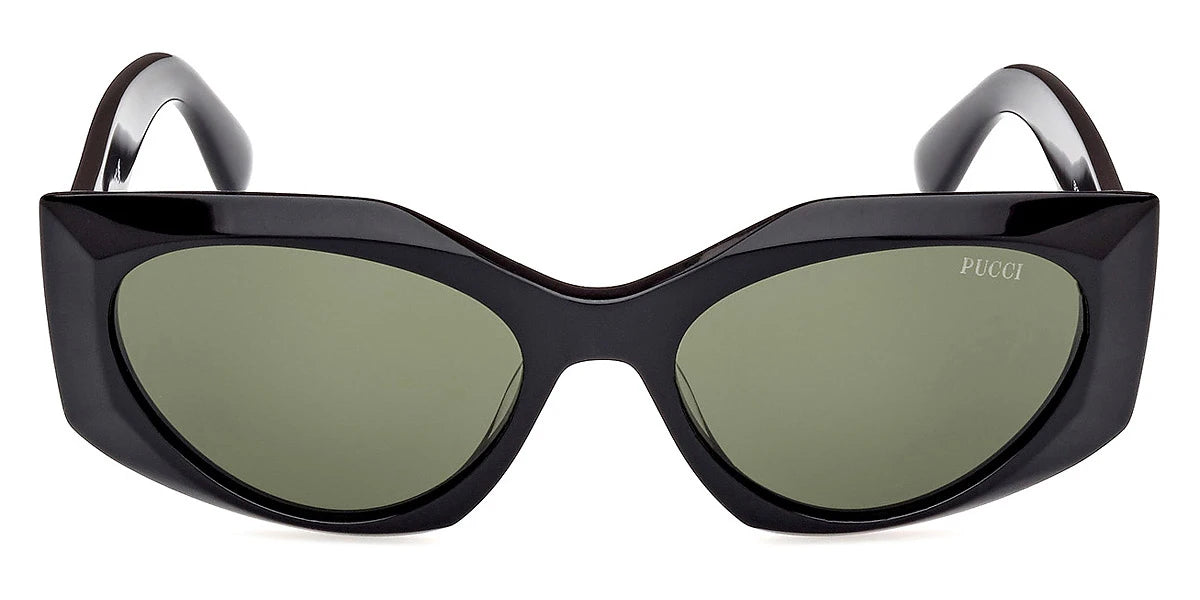 Shiny Black (01N) Sunglasses with Green lenses (EP0216 01N 55) by Emilio Pucci™. Size: 55-18-140, Shape: Geometric, Material: Plastic.