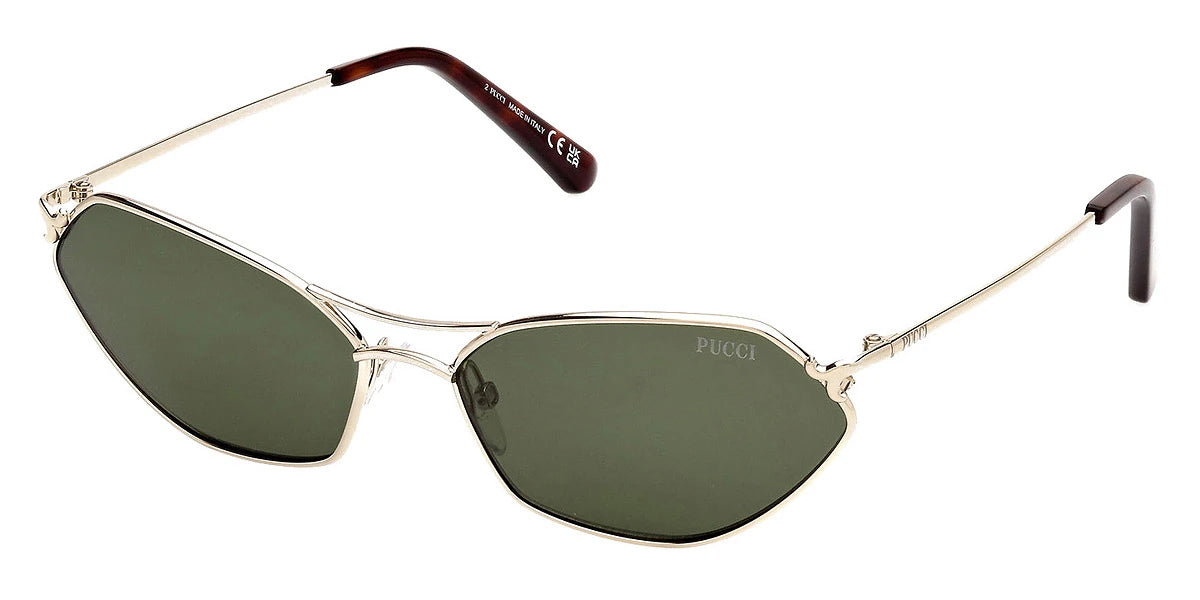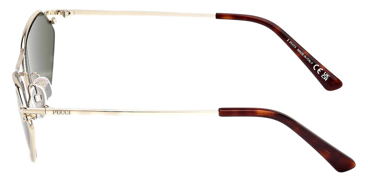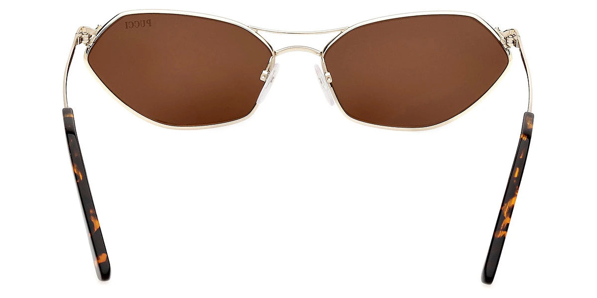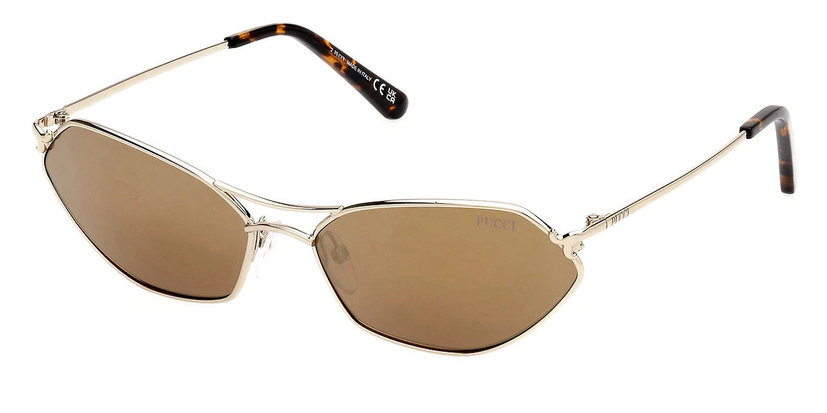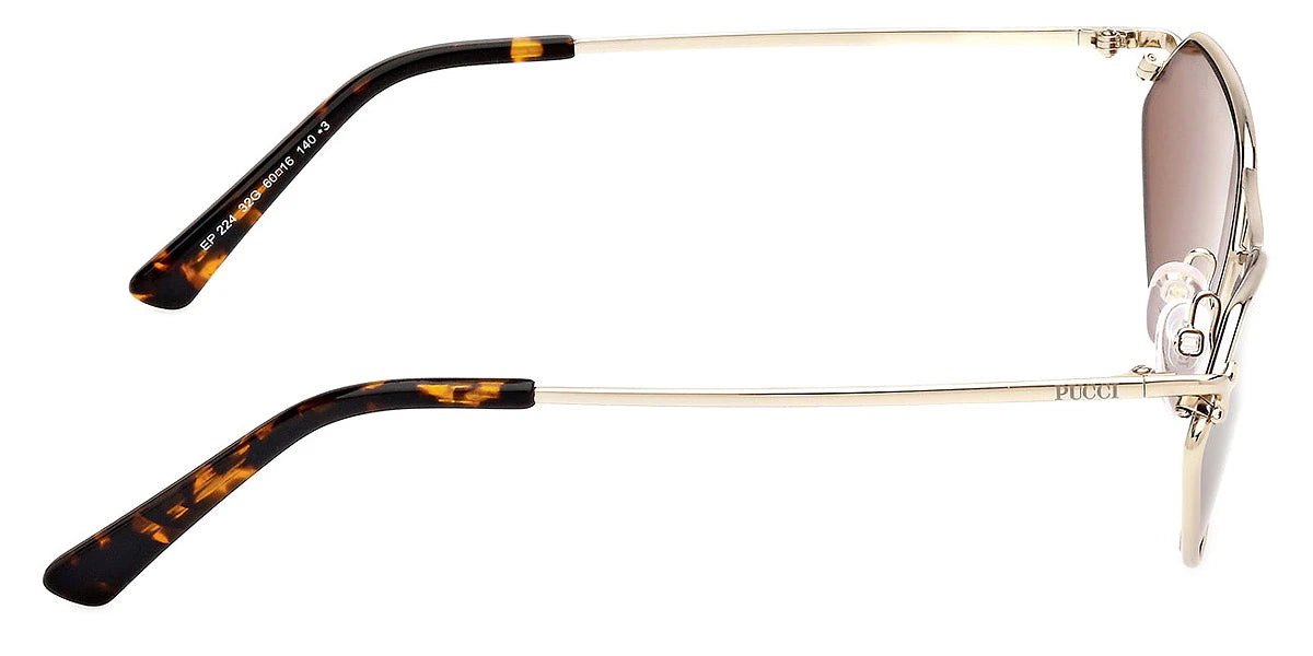 Shiny Pale Gold (32G) Sunglasses with Brown Mirrored lenses (EP0224 32G 60) by Emilio Pucci™. Size: 60-16-140, Shape: Geometric, Material: Metal.