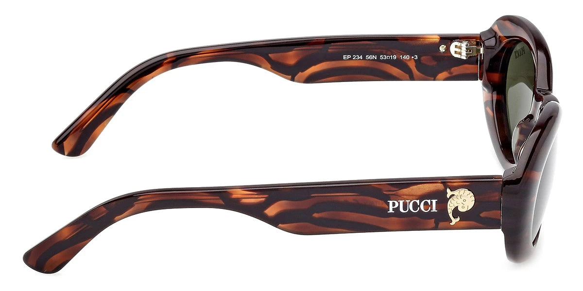 EP0234 Sunglasses by Emilio Pucci™. The oval shape design feature a full rim plastic frame. This model is available in four different color combinations and sizes. Emilio Pucci sunglasses are designed for seductive and feminine women, who appreciate a luxury lifestyle and sophisticated aesthetics. Each pair of sunglasses features up-to-date, refined construction combined with signature prints and bold colors for a truly exiting look. Thanks to the impeccable Italian craftsmanship, advanced technologies and the highest grade materials utilized, Emilio Pucci sunglasses can boast of a durable construction which is both super comfortable and incredibly stylish.