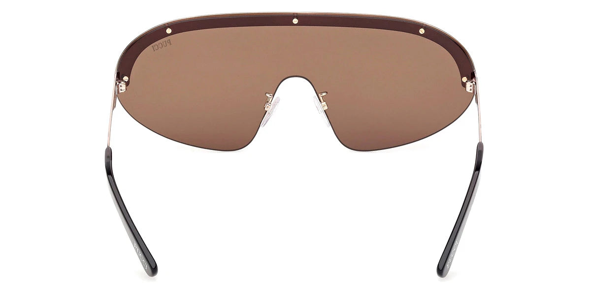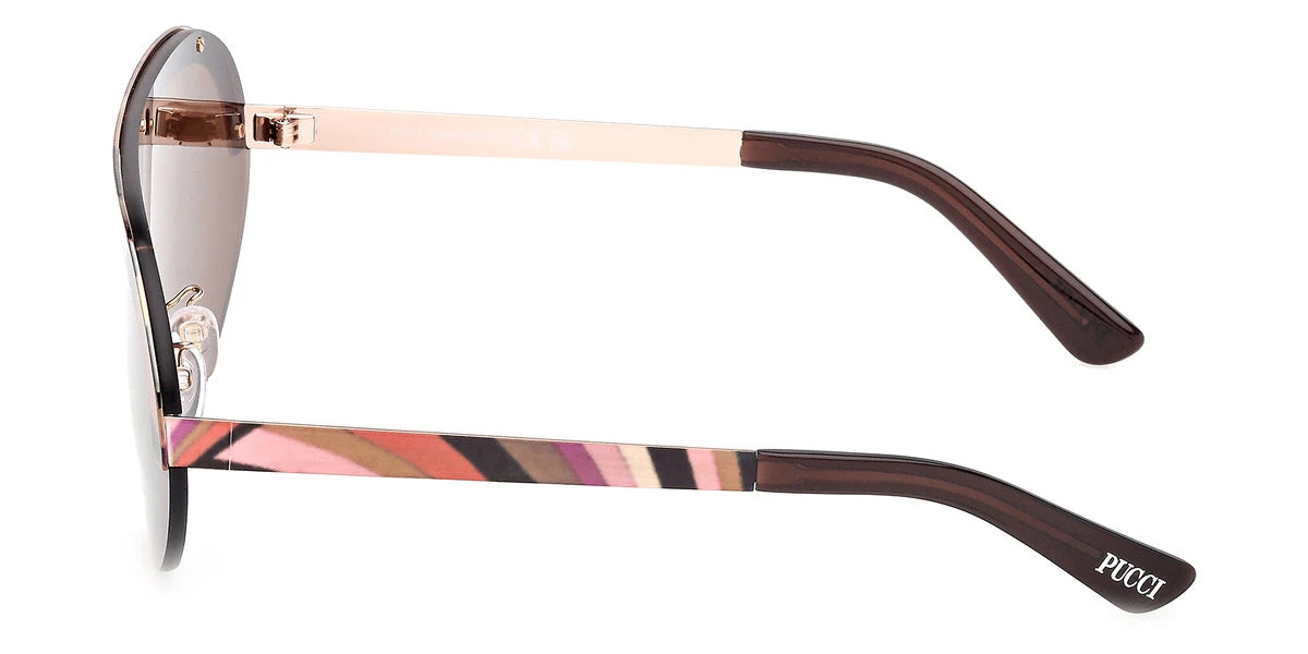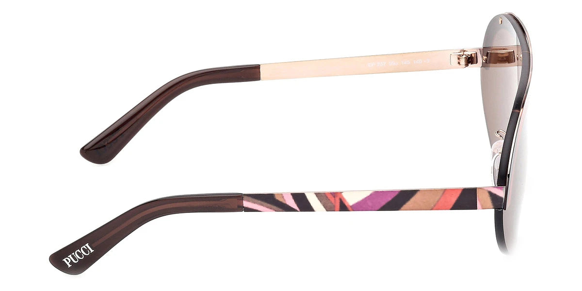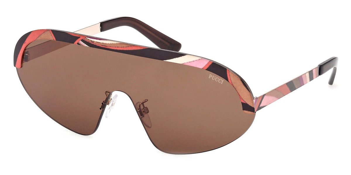EP0237 Sunglasses by Emilio Pucci™. The shield shape design feature a semi rimless metal frame. This model is available in two different color combinations and sizes. Emilio Pucci sunglasses are designed for seductive and feminine women, who appreciate a luxury lifestyle and sophisticated aesthetics. Each pair of sunglasses features up-to-date, refined construction combined with signature prints and bold colors for a truly exiting look. Thanks to the impeccable Italian craftsmanship, advanced technologies and the highest grade materials utilized, Emilio Pucci sunglasses can boast of a durable construction which is both super comfortable and incredibly stylish.