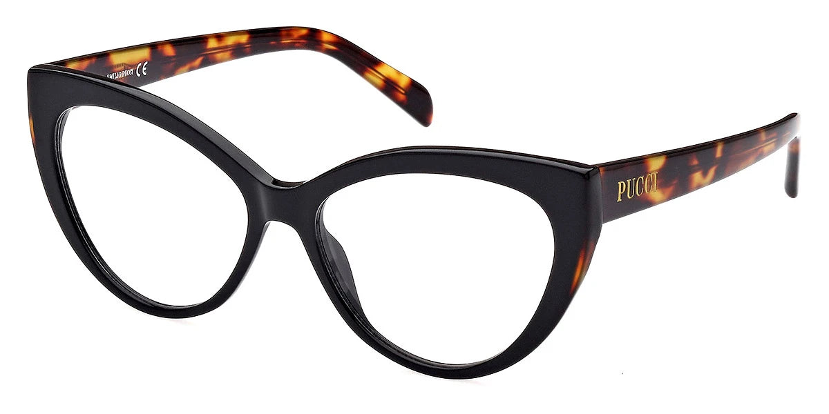 Shiny Black (005) Eyeglasses (EP5215 005 54) by Emilio Pucci™. Size: 54-15-140, Shape: Cat-Eye, Material: Plastic.