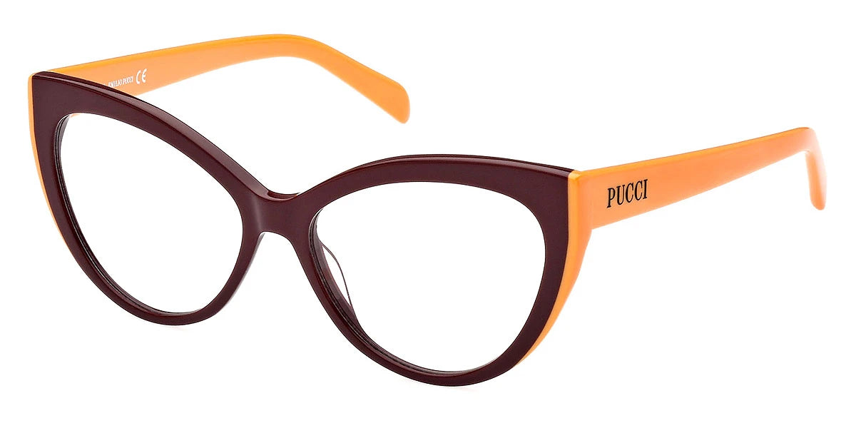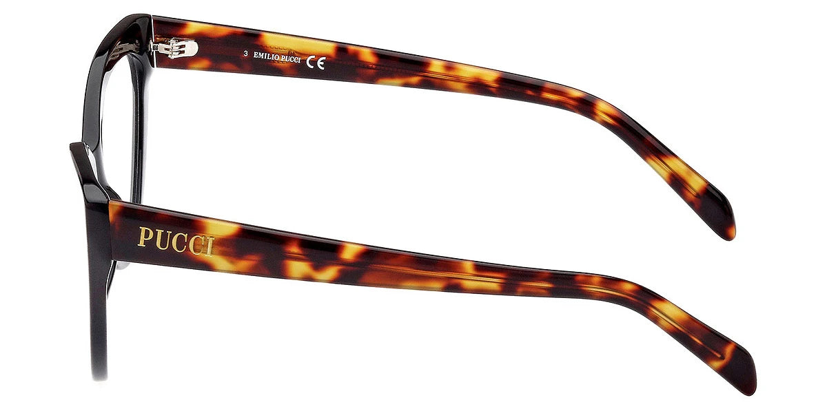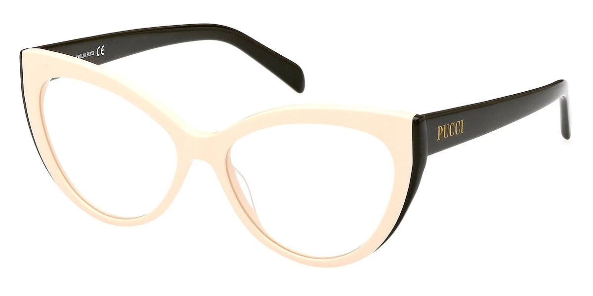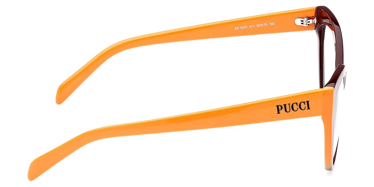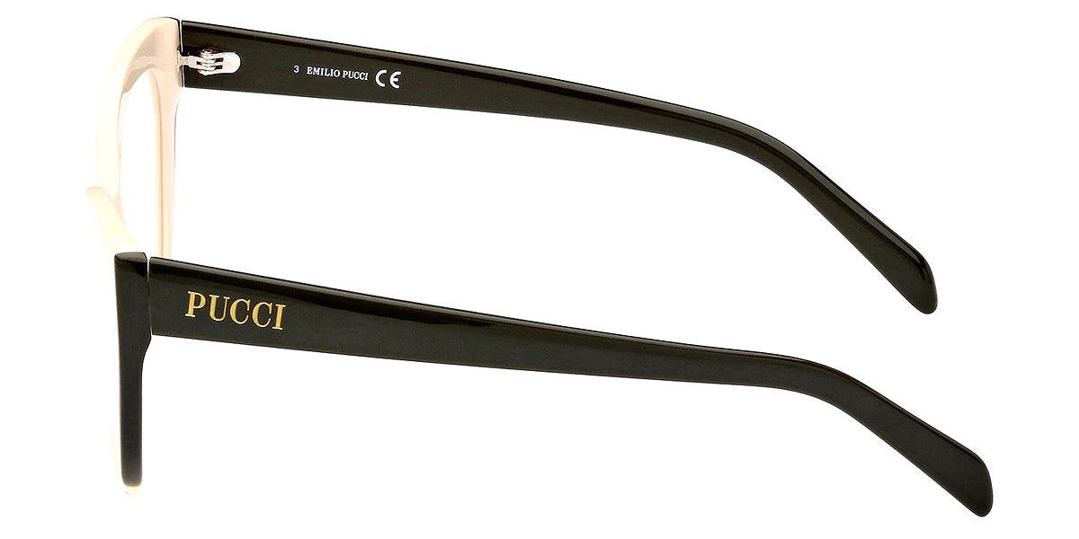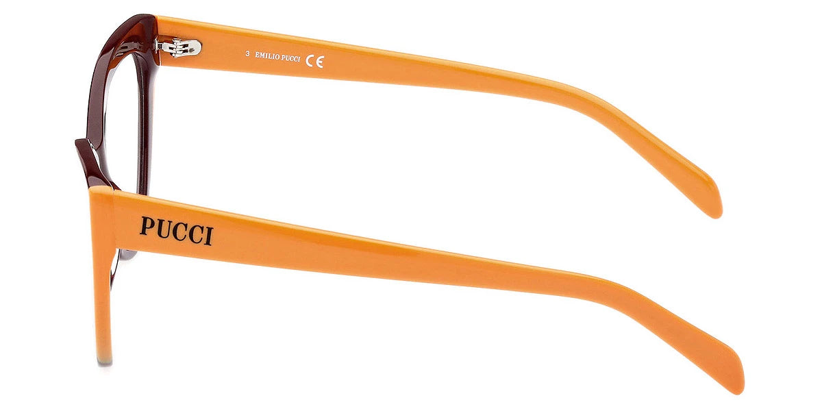 Emilio Pucci eyeglasses are designed with four key focus areas in mind: Graphisms, inspirations with timeless interaction of color that results in extraordinary geometric combos; Dynamic attitude, which includes styles evoking the ironic and playful spirit of the brand; Sophisticated details, featuring precious frames that take their detailing from the collection of accessories; and, finally, Product Story, i.e. fashion show glasses with a cat-eye silhouette and a futuristic attitude.
