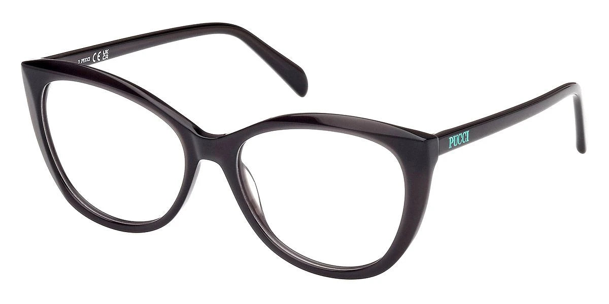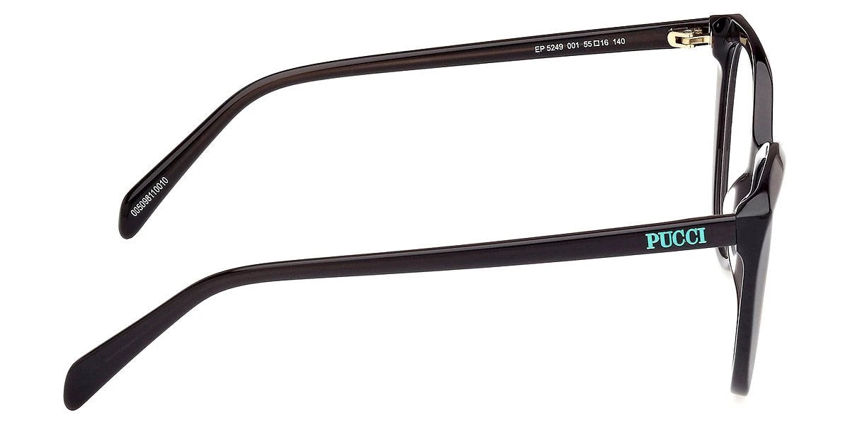 Shiny Black (001) Eyeglasses (EP5249 001 55) by Emilio Pucci™. Size: 55-16-140, Shape: Cat-Eye, Material: Plastic.