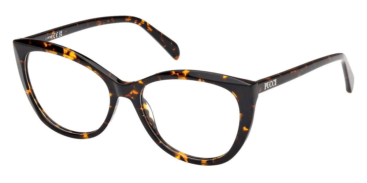 EP5249 Eyeglasses by Emilio Pucci™. The cat-eye shape design feature a full rim plastic frame. This model is available in three different color combinations and sizes. The latest collection of Emilio Pucci eyeglasses is all about the brand’s iconic prints and beautiful colors, revisited with a contemporary flair to create a modern and stylish eyewear, while staying true to the refined elegance associated with the brand. Thanks to a perfect combination of top-grade acetates, the eyewear looks innovative and unique with its fine interplays of geometric elements. For a contemporary and ironic look, Emilio Pucci offers eyeglasses in delicate metal shapes that come decorated with contrasting profiles and vivid touches of color.