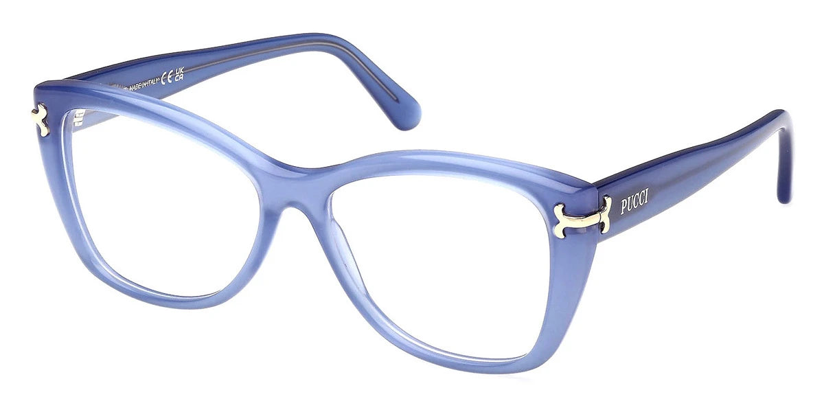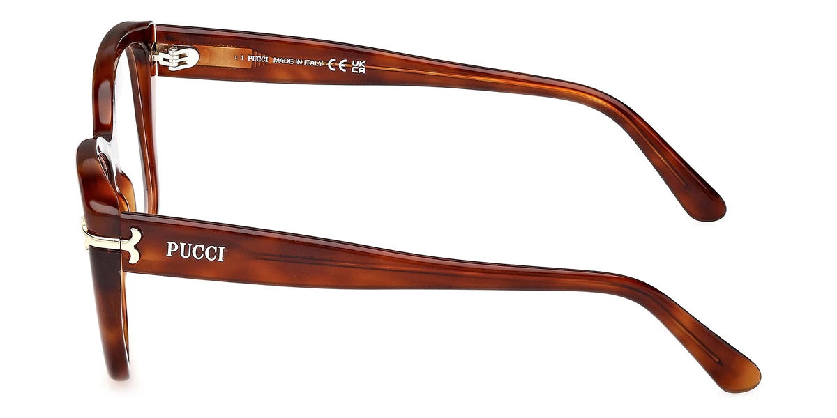 Emilio Pucci eyeglasses are designed with four key focus areas in mind: Graphisms, inspirations with timeless interaction of color that results in extraordinary geometric combos; Dynamic attitude, which includes styles evoking the ironic and playful spirit of the brand; Sophisticated details, featuring precious frames that take their detailing from the collection of accessories; and, finally, Product Story, i.e. fashion show glasses with a cat-eye silhouette and a futuristic attitude.