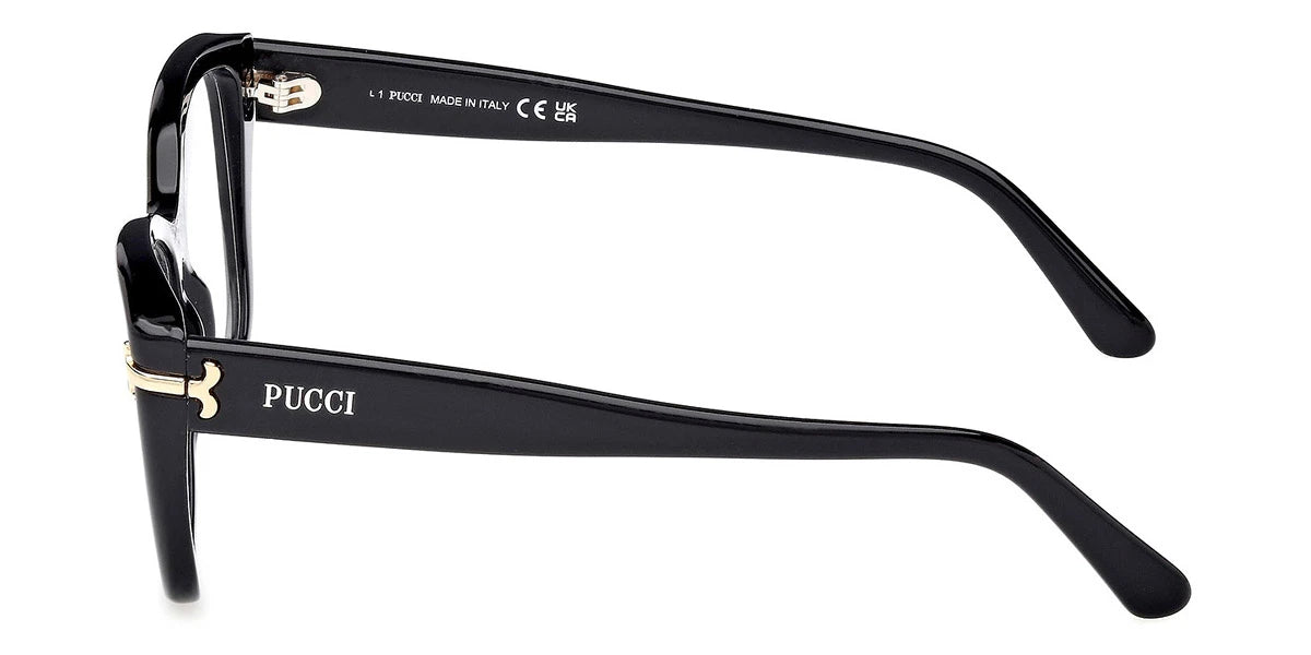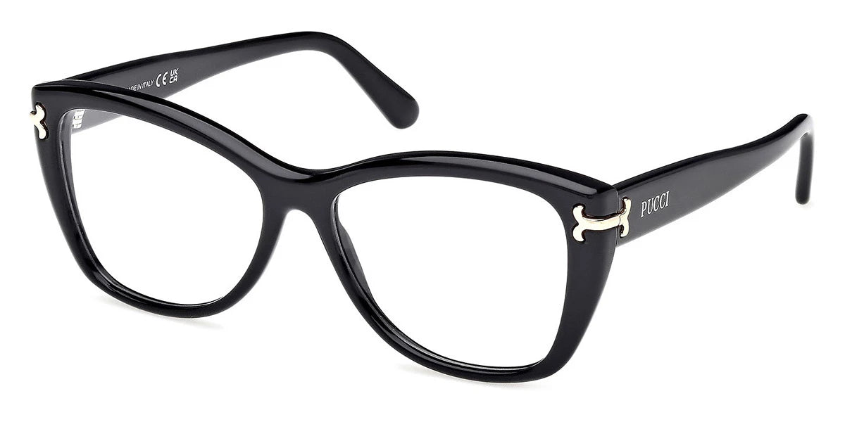 Shiny Black (001) Eyeglasses (EP5257 001 54) by Emilio Pucci™. Size: 54-15-140, Shape: Butterfly, Material: Plastic.