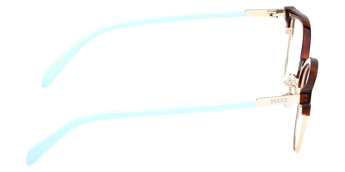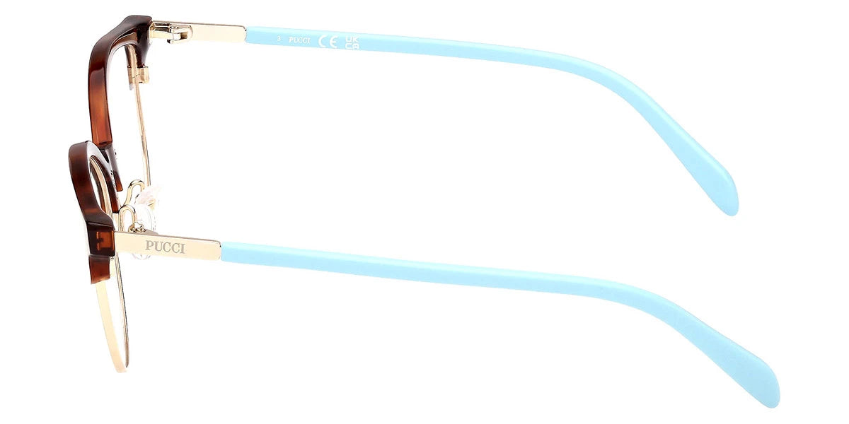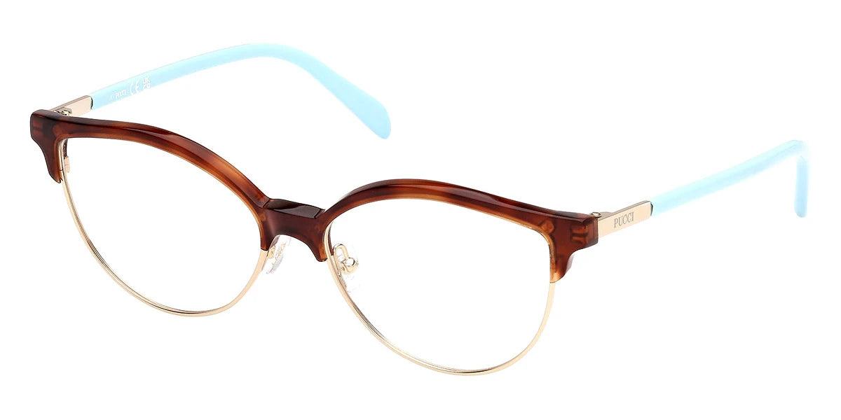 Colored Havana/Shiny Light Blue (055) Eyeglasses (EP5259 055 55) by Emilio Pucci™. Size: 55-15-140, Shape: Round, Material: Plastic.