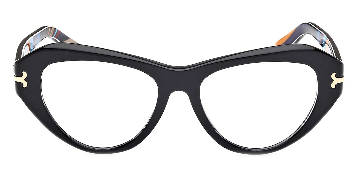 EP5263 Eyeglasses by Emilio Pucci™. The cat-eye shape design feature a full rim plastic frame. This model is available in three different color combinations and sizes. The latest collection of Emilio Pucci eyeglasses is all about the brand’s iconic prints and beautiful colors, revisited with a contemporary flair to create a modern and stylish eyewear, while staying true to the refined elegance associated with the brand. Thanks to a perfect combination of top-grade acetates, the eyewear looks innovative and unique with its fine interplays of geometric elements. For a contemporary and ironic look, Emilio Pucci offers eyeglasses in delicate metal shapes that come decorated with contrasting profiles and vivid touches of color.
