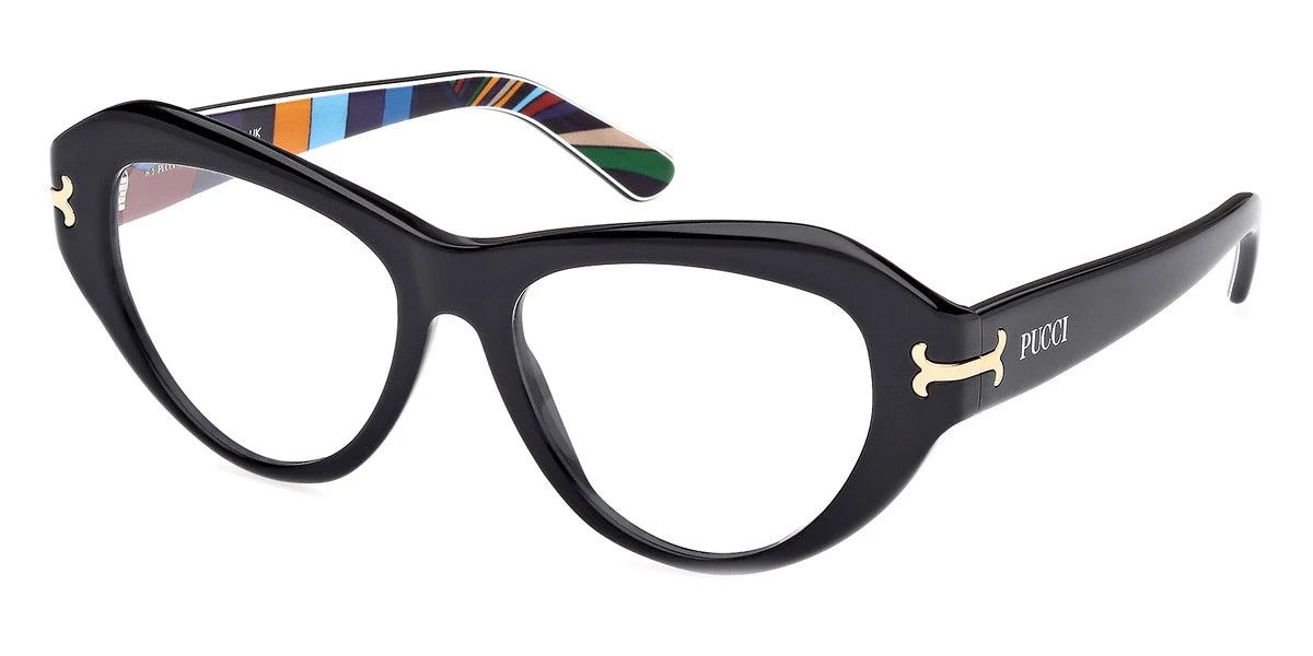 Emilio Pucci eyeglasses are designed with four key focus areas in mind: Graphisms, inspirations with timeless interaction of color that results in extraordinary geometric combos; Dynamic attitude, which includes styles evoking the ironic and playful spirit of the brand; Sophisticated details, featuring precious frames that take their detailing from the collection of accessories; and, finally, Product Story, i.e. fashion show glasses with a cat-eye silhouette and a futuristic attitude.
