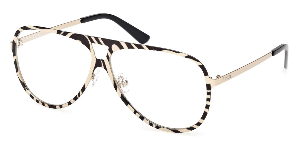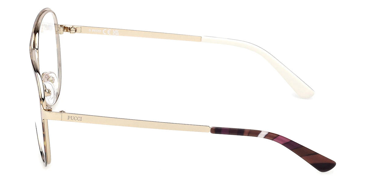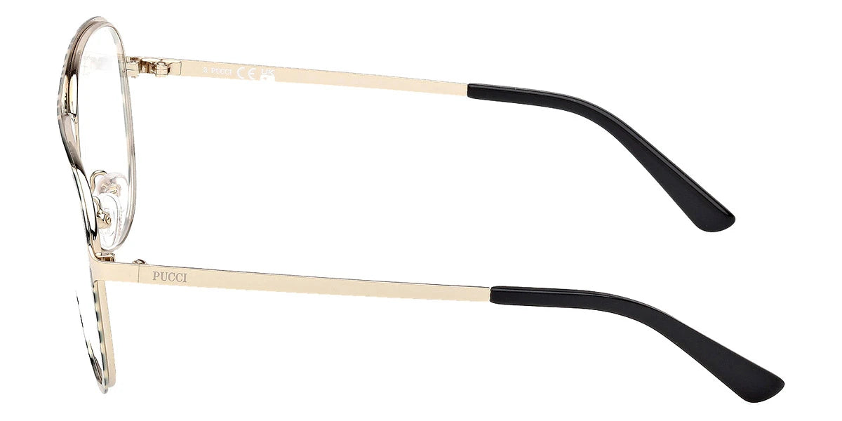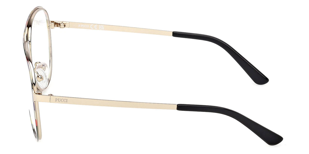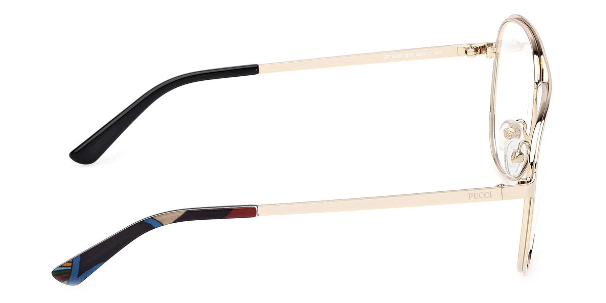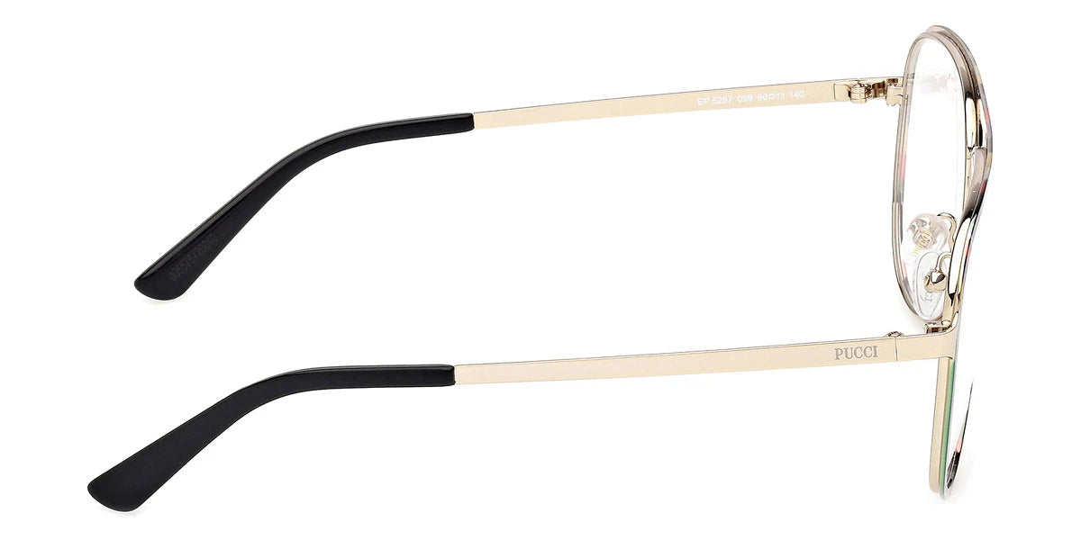 Shiny Pale Gold/Black/Texture (005) Eyeglasses (EP5267 005 60) by Emilio Pucci™. Size: 60-11-140, Shape: Aviator, Material: Metal.
