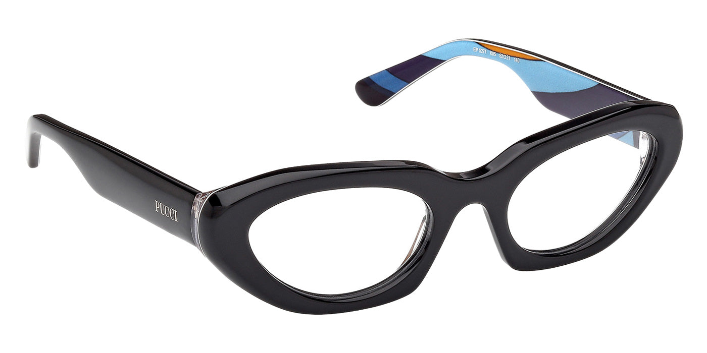 Black/Texture (005) Eyeglasses (EP5271 005 52) by Emilio Pucci. Size: 52-21-140, Shape: Cat-Eye, Material: Plastic.