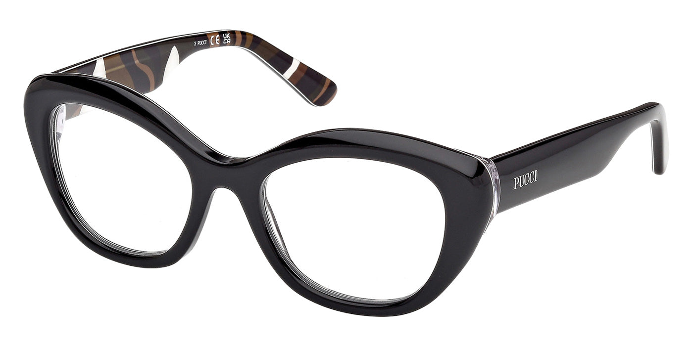 Black/Texture (005) Eyeglasses (EP5272 005 52) by Emilio Pucci. Size: 52-19-140, Shape: Cat-Eye, Material: Plastic.