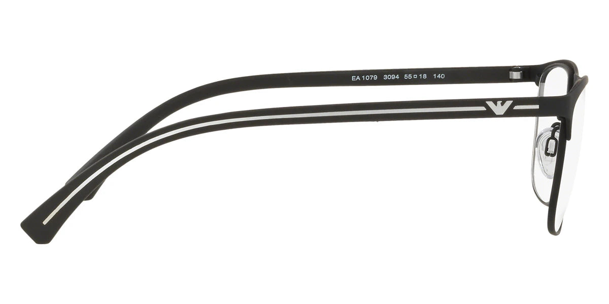 Rubber Black (3094) Eyeglasses (EA1079 3094 55) by EMPORIO ARMANI™. Size: 55-18-140, Shape: Rectangle, Material: Metal.
