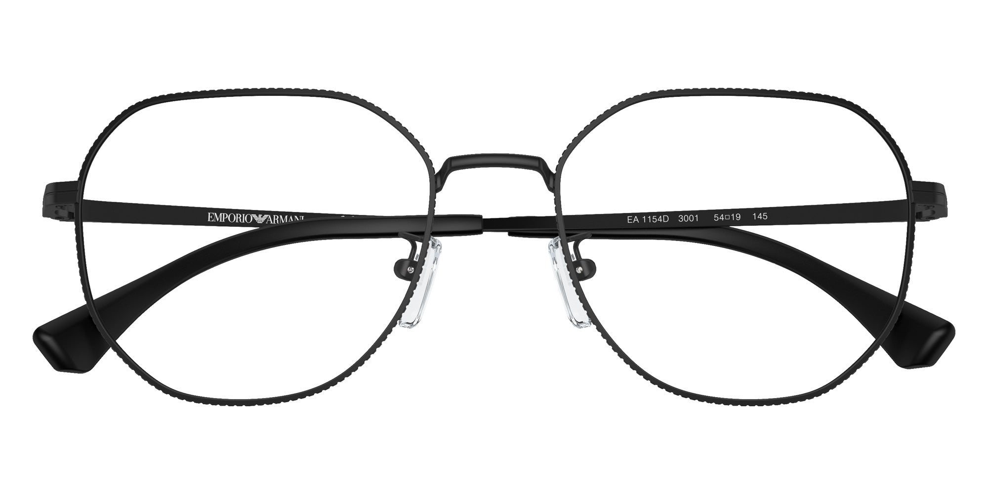 Matte Black (3001) Eyeglasses (EA1154D 3001 52) by EMPORIO ARMANI. Size: 52-19-145, Shape: Round, Material: Metal.