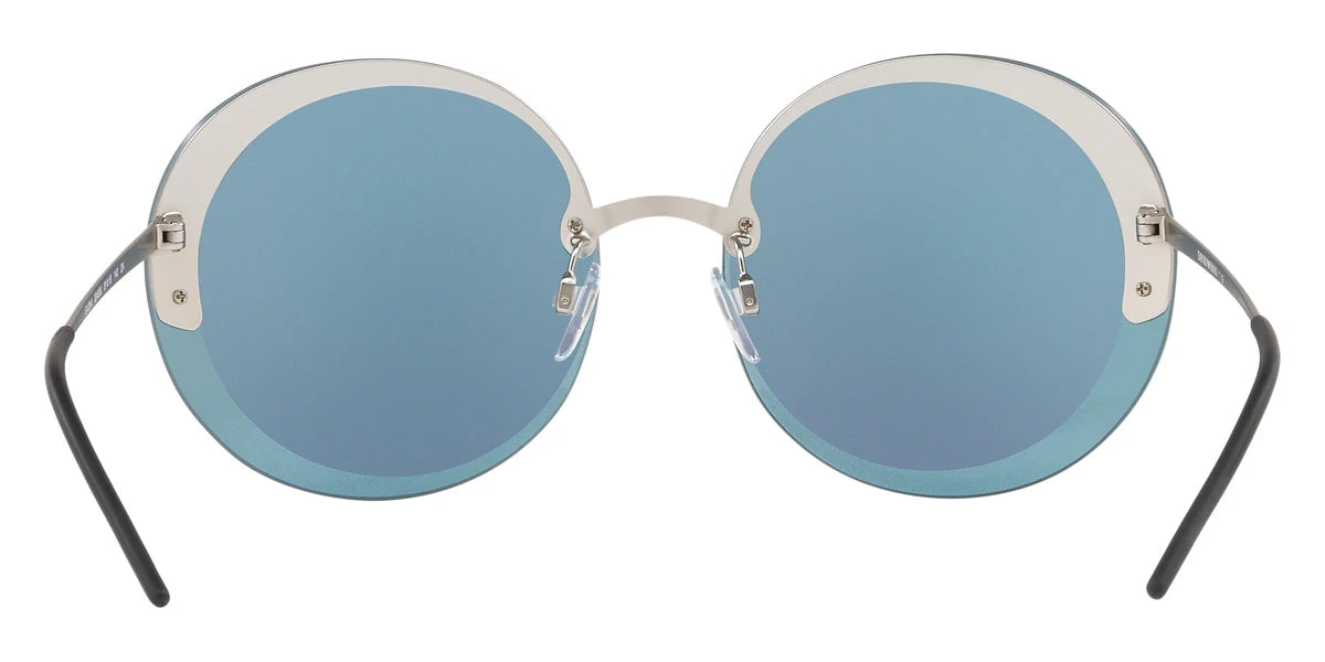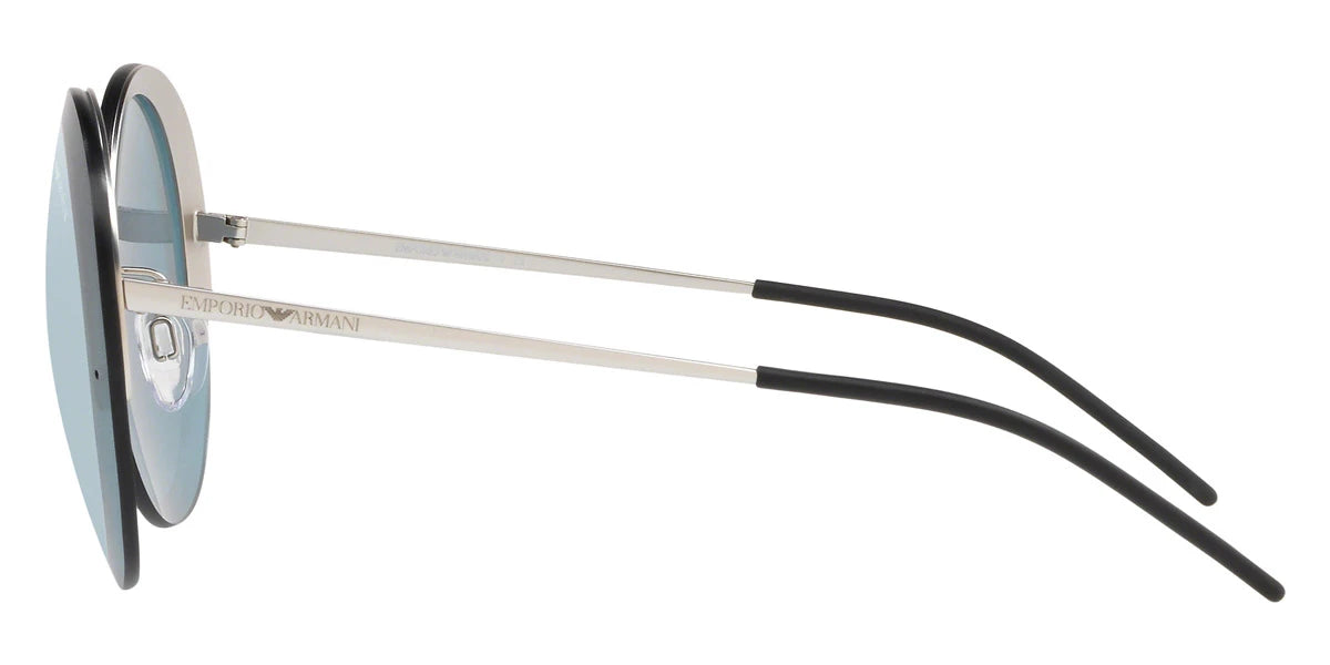 Matte Silver (30456J) Sunglasses with Blue Mirrored White lenses (EA2044 30456J 61) by EMPORIO ARMANI™. Size: 61-16-140, Shape: Round, Material: Metal.