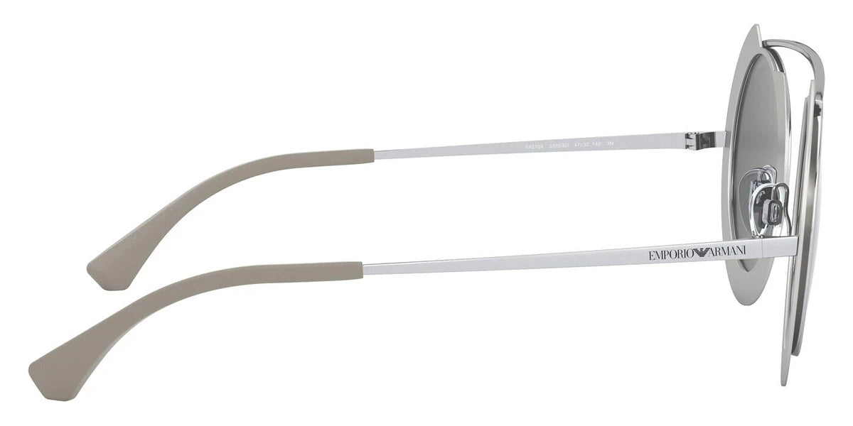 Silver (33256G) Sunglasses with Mirrored Silver lenses (EA2104 33256G 47) by EMPORIO ARMANI™. Size: 47-32-140, Shape: Round, Material: Metal.