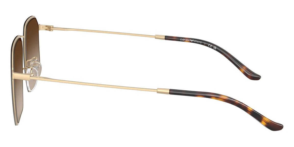 Matte Pale Gold (300213) Sunglasses with Gradient Brown lenses (EA2165D 300213 58) by EMPORIO ARMANI™. Size: 58-16-145, Shape: Irregular, Material: Metal.