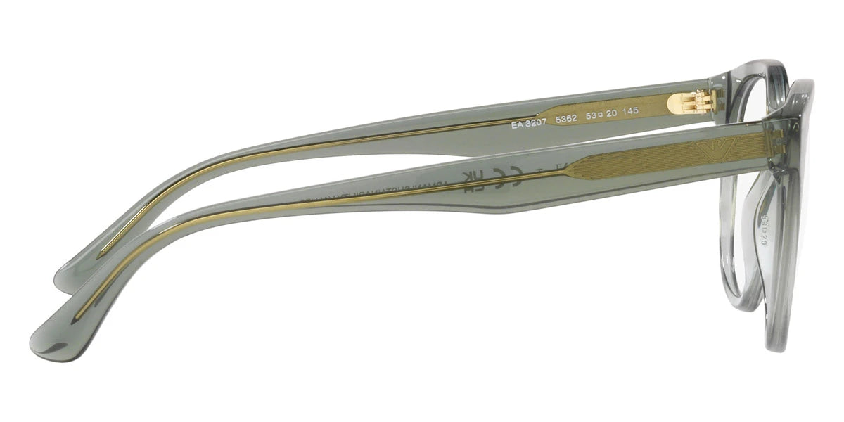 Shiny Transparent Green (5362) Eyeglasses (EA3207 5362 53) by EMPORIO ARMANI™. Size: 53-20-145, Shape: Wayfarer, Material: Plastic.
