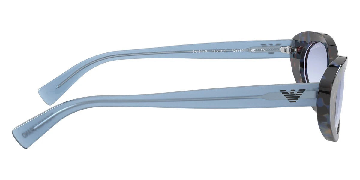 Shiny Blue Havana (582819) Sunglasses with Gradient Blue lenses (EA4143 582819 52) by EMPORIO ARMANI™. Size: 52-19-140, Shape: Cat-Eye, Material: Plastic.
