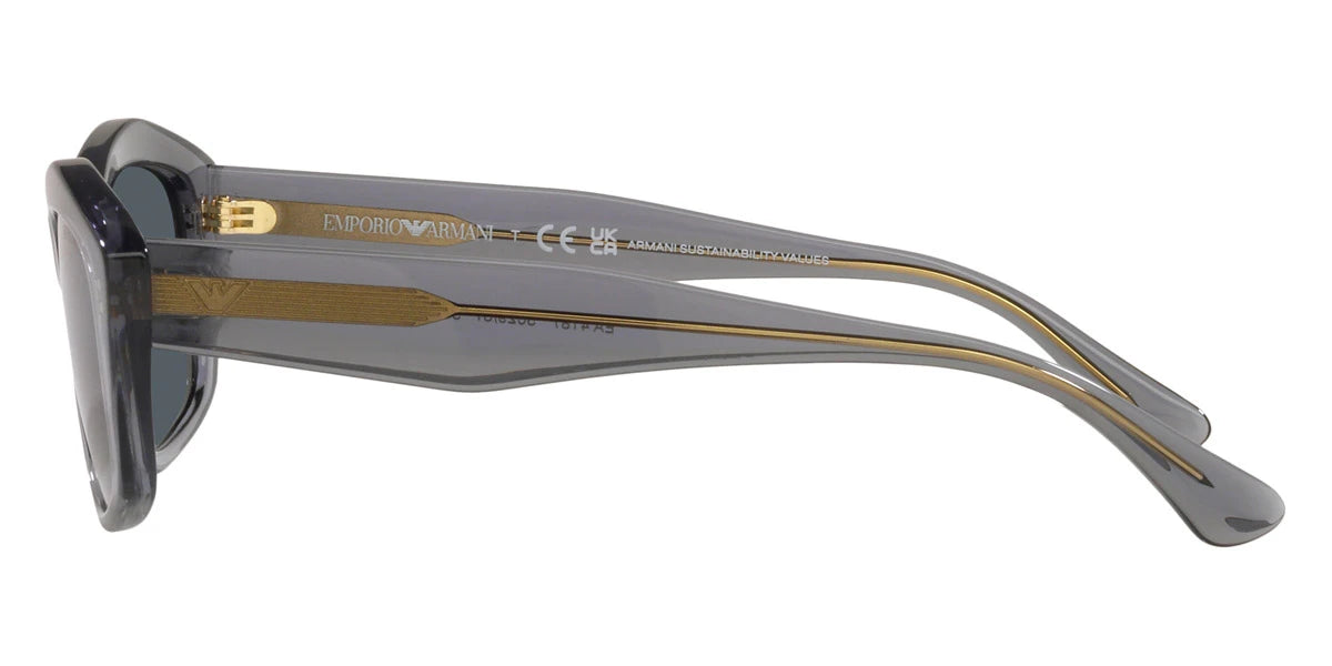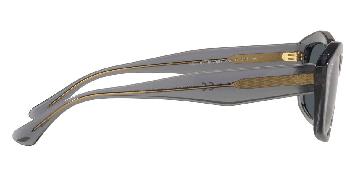 Shiny Transparent Gray (502987) Sunglasses with Dark Gray lenses (EA4187 502987 55) by EMPORIO ARMANI™. Size: 55-16-140, Shape: Square, Material: Plastic.
