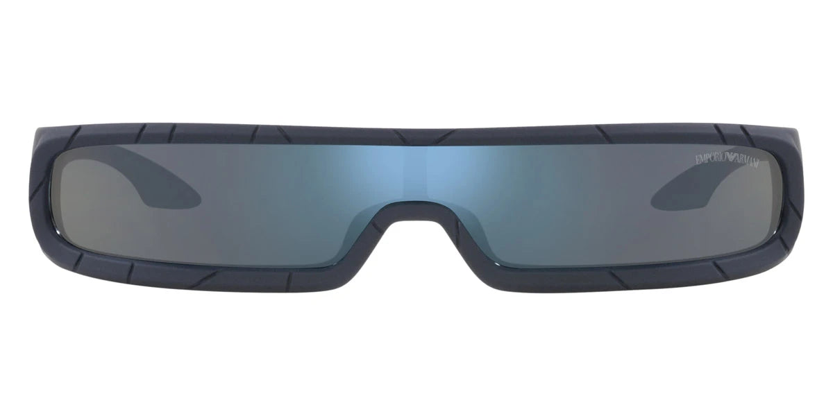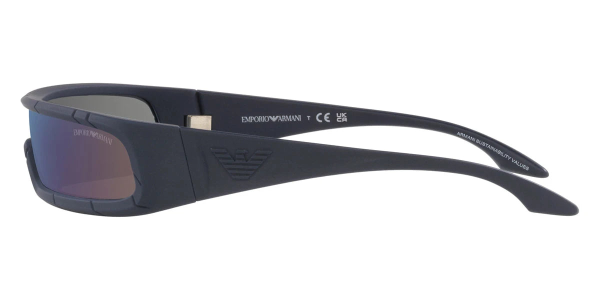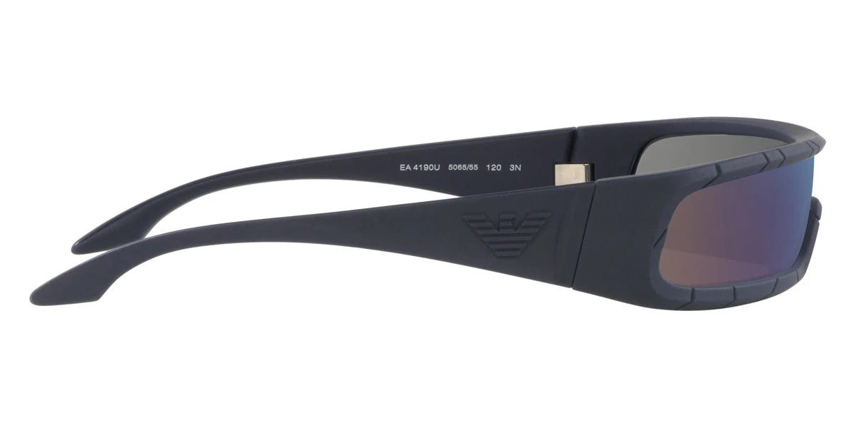 Rubberised Blue (506555) Sunglasses with Dark Blue Mirrored Blue lenses (EA4190U 506555 136) by EMPORIO ARMANI™. Size: 136-0-120, Shape: Rectangle, Material: Plastic.