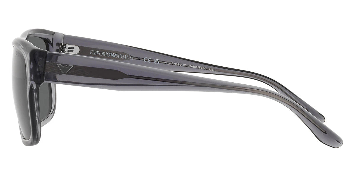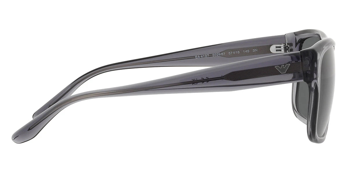 Transparent Gray (502987) Sunglasses with Dark Gray lenses (EA4197 502987 57) by EMPORIO ARMANI™. Size: 57-18-145, Shape: Square, Material: Acetate.