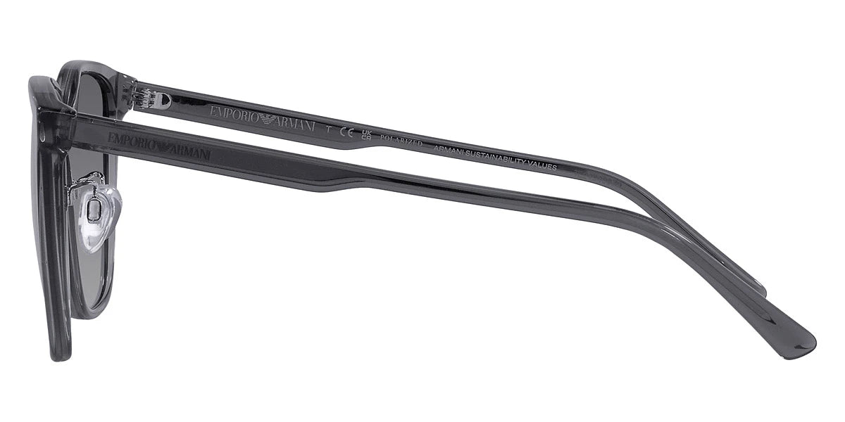 Shiny Transparent Gray (5029T3) Sunglasses with Polarized Gray Gradient lenses (EA4206D 5029T3 57) by EMPORIO ARMANI™. Size: 57-19-145, Shape: Square, Material: Acetate.