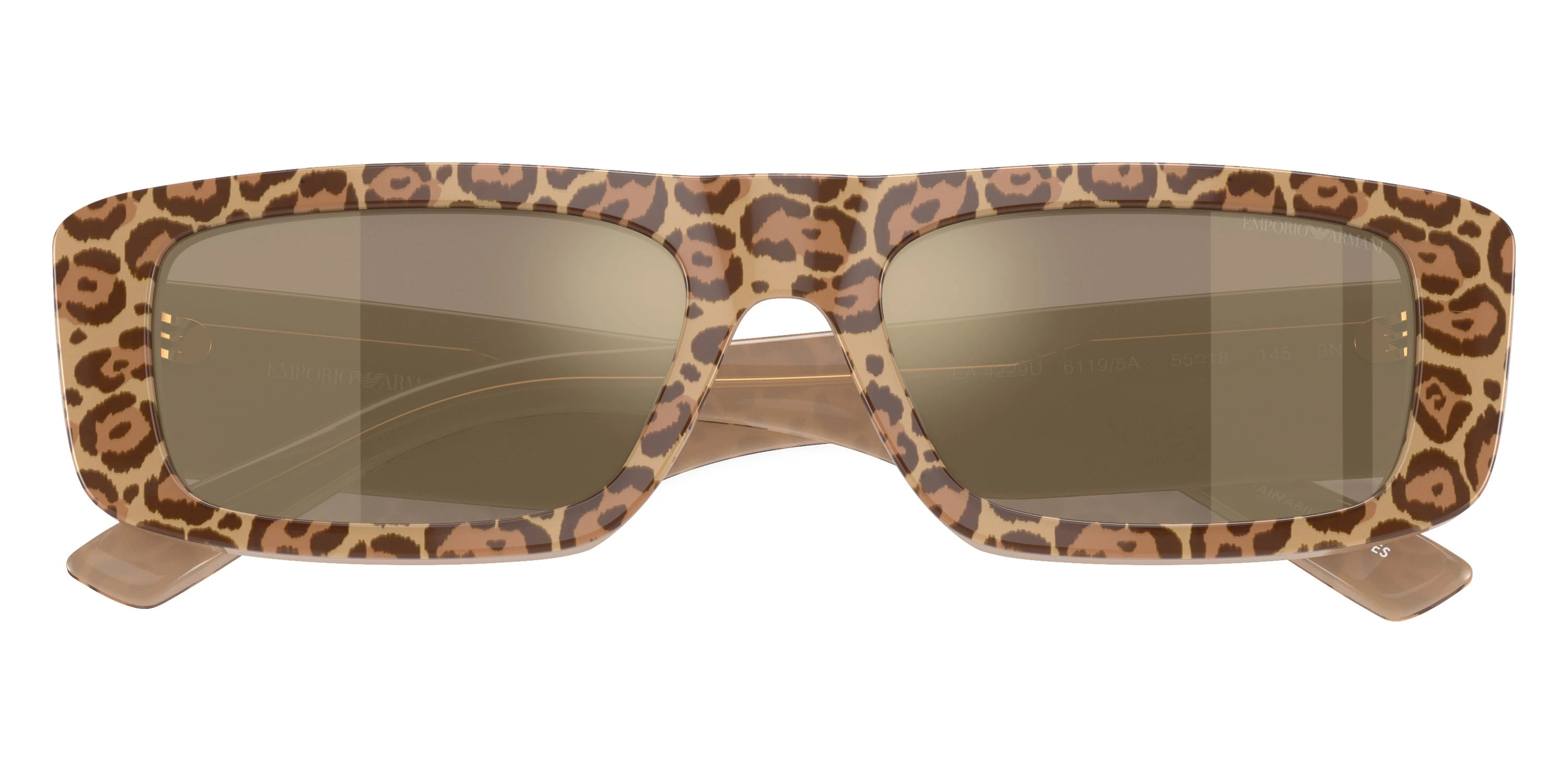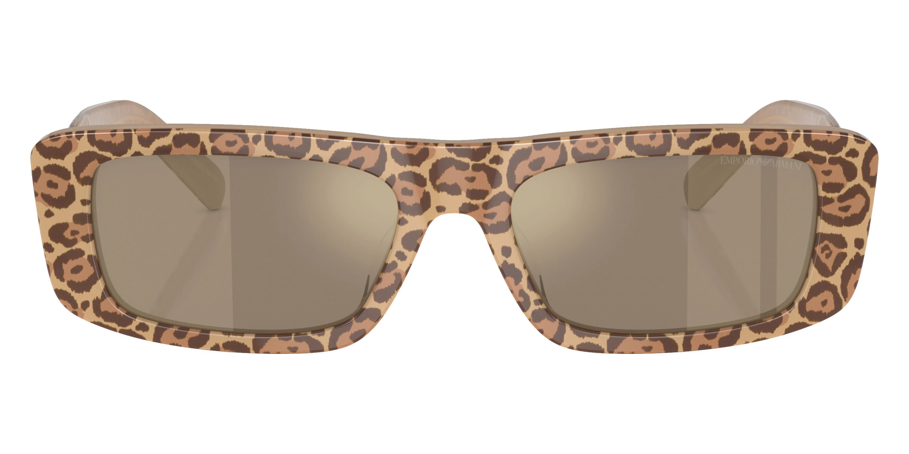 Leopard (61195A) Sunglasses with Light Brown Mirrored Gold lenses (EA4229U 61195A 55) by EMPORIO ARMANI™. Size: 55-18-145, Shape: Rectangle, Material: Acetate.