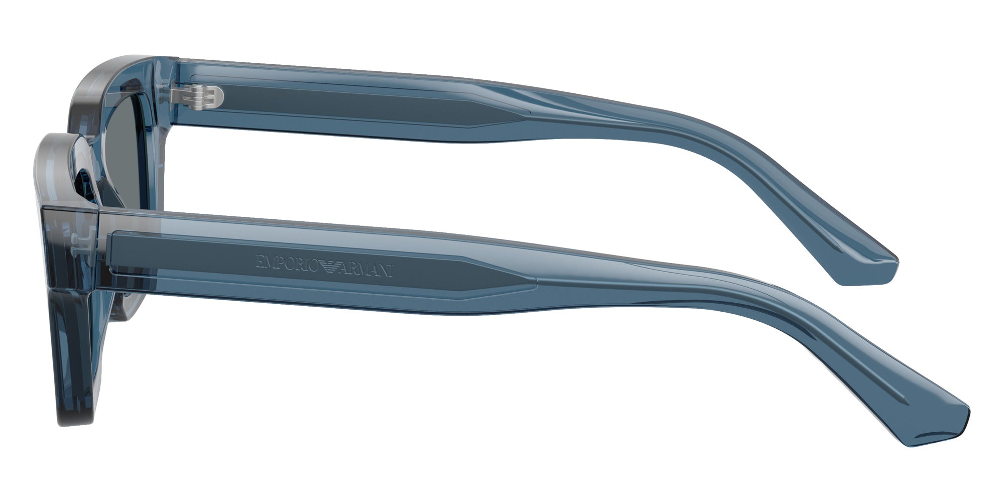Shiny Transparent Blue (636280) Sunglasses with Dark Blue lenses (EA4270 636280 51) by EMPORIO ARMANI. Size: 51-19-145, Shape: Irregular, Material: Acetate.