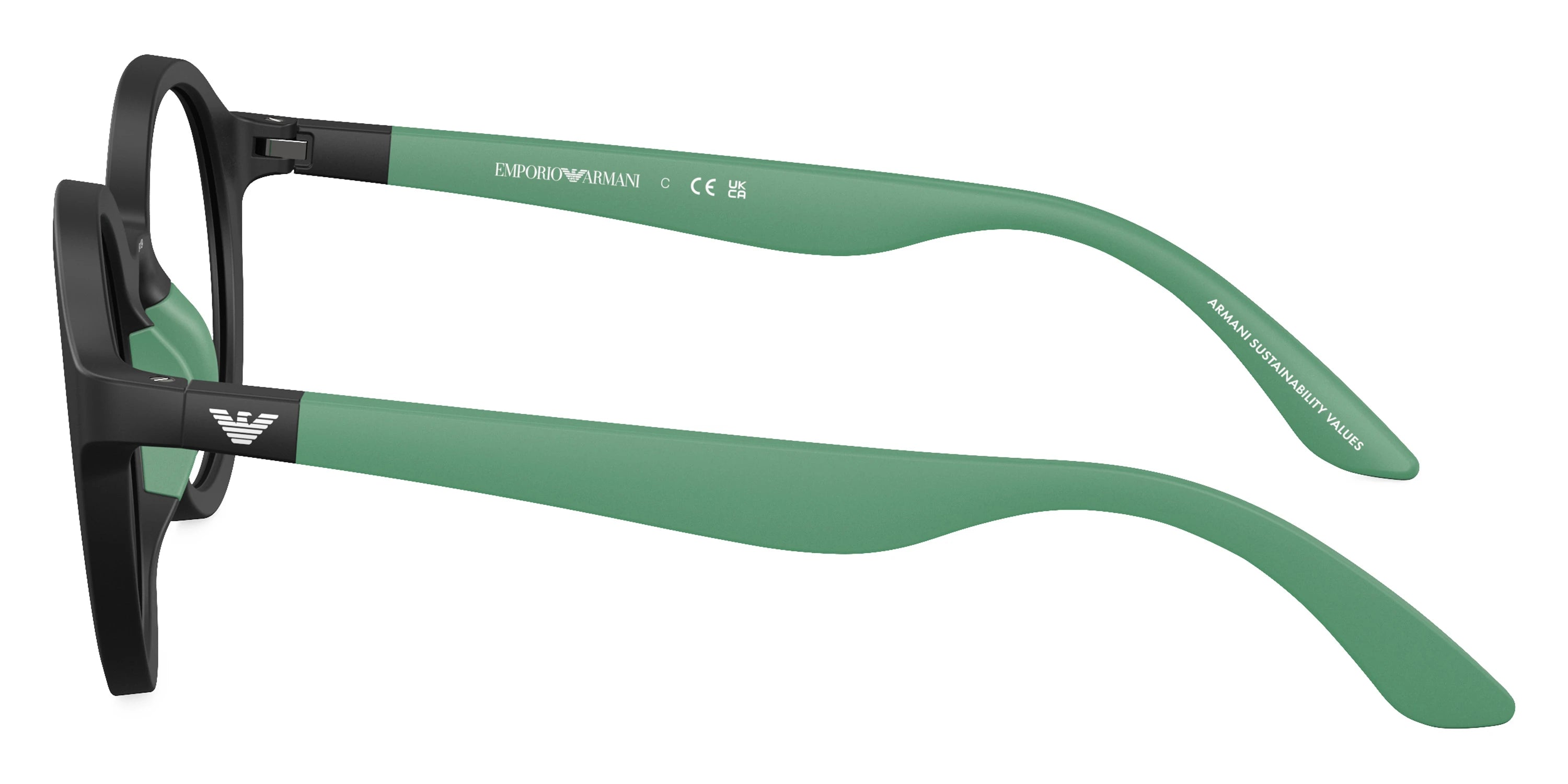 Matte Black/Rubber Green (5001) Eyeglasses (EK3005F 5001 48) by EMPORIO ARMANI™. Size: 48-19-130, Shape: Round, Material: Injected and Rubber.