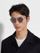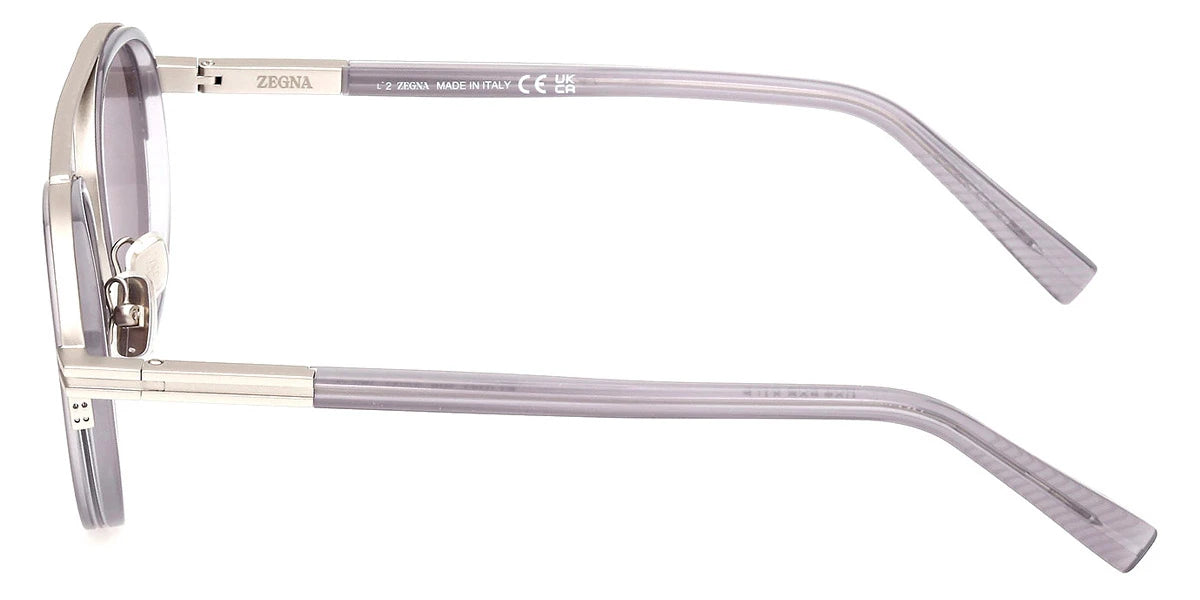 Shiny Gray (20A) Sunglasses with Smoke lenses (Orizzonte II EZ0242 20A 51) by Ermenegildo Zegna™. Size: 51-21-145, Shape: Round, Material: Metal.