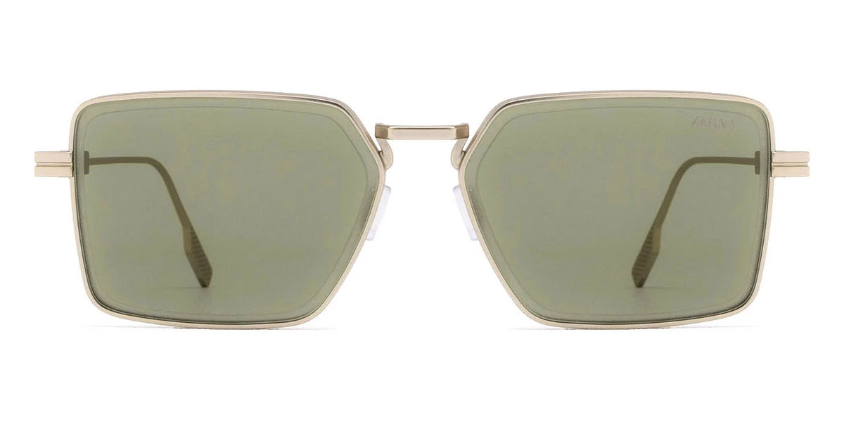 Matte Pale Gold (32N) Sunglasses with Green lenses (EZ0243 32N 56) by Ermenegildo Zegna™. Size: 56-16-145, Shape: Rectangle, Material: Metal.