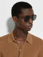 The Ermenegildo Zegna sunglasses collection presents four fundamental concepts of the famous brand. The first concept is all about Shapes, since the collection offers a variety of iconic silhouettes, including sporty, elevated, and classic styles. The second concept, - Chevron, brings to life the unique texture used in Zegna fabrics and which is now can be seen on nose pads, temples, and front pins. The next concept focuses on Vicuna, the extraordinary orange hue of the Zegna menswear line, which appears in the sunnies’ lenses, temple tips and hinge details. And the final concept, based on Technology, reflects the manufacturer’s constant strive for excellence in safety and quality. The Tech styles can boast of premium-grade polarized lenses and leather inserts.