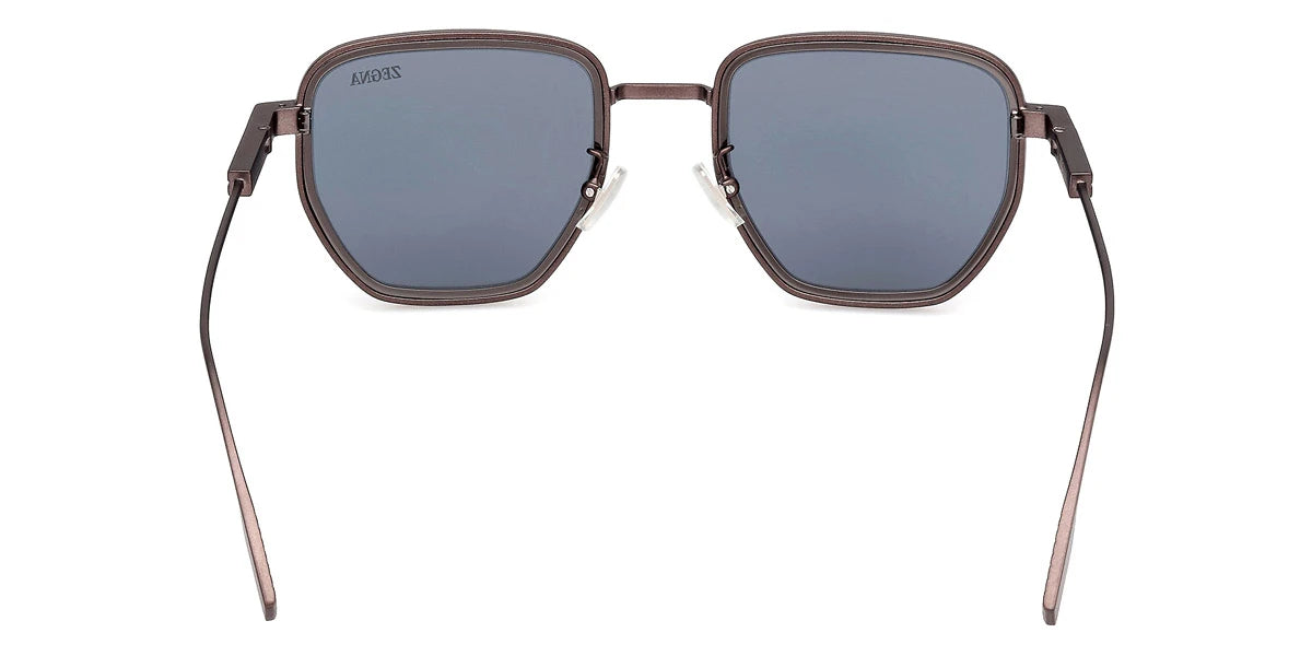 Matte Dark Bronze (37V) Sunglasses with Blue lenses (EZ0256 37V 49) by Ermenegildo Zegna™. Size: 49-22-145, Shape: Geometric, Material: Metal.