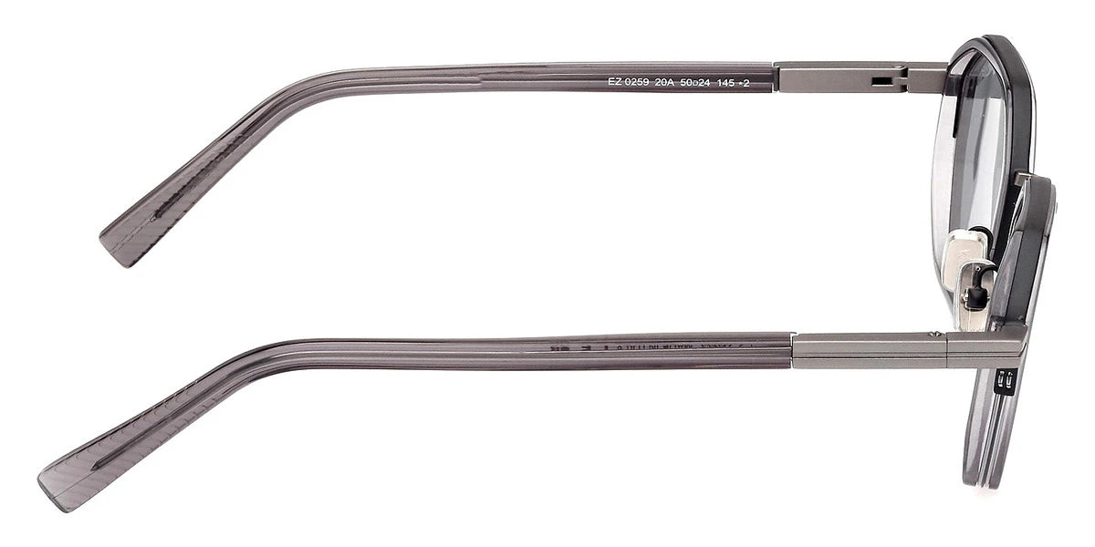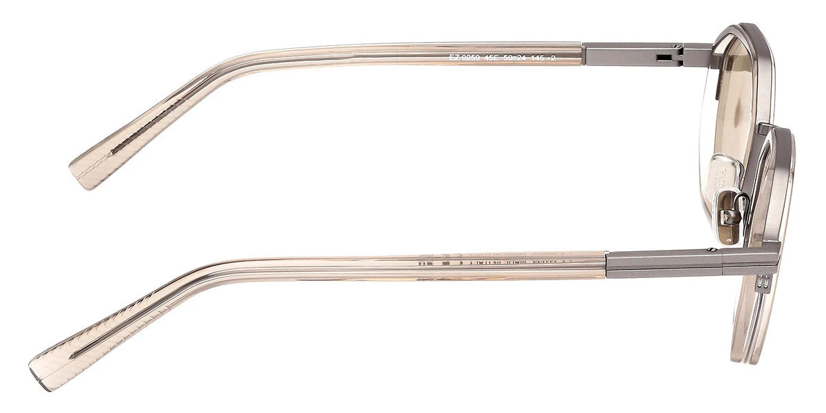 Shiny Gray (20A) Sunglasses with Smoke lenses (EZ0259 20A 50) by Ermenegildo Zegna™. Size: 50-24-145, Shape: Geometric, Material: Metal.