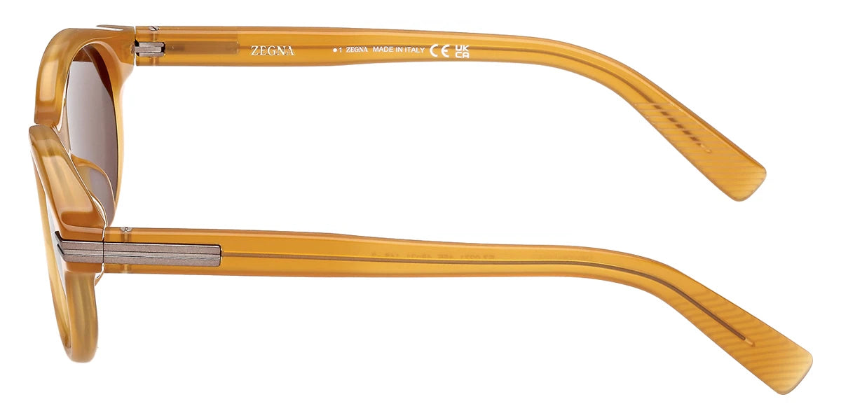 Shiny Light Brown (48V) Sunglasses with Blue lenses (EZ0271 48V 48) by Ermenegildo Zegna™. Size: 48-21-145, Shape: Round, Material: Plastic.