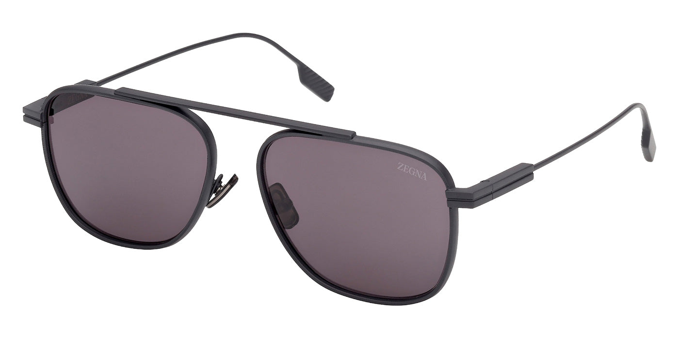 Matte Black (02E) Sunglasses (EZ0291 02E 57) by Ermenegildo Zegna. Size: 57-16-145, Shape: Geometric, Material: Metal.