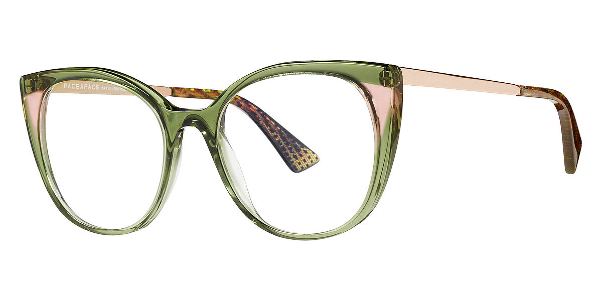 Transparent Bottle Green (3049) Eyeglasses (ANOUK 1 3049 52) by Face à Face™. Size: 52-17-143, Shape: Cat-Eye, Material: Stainless Steel.