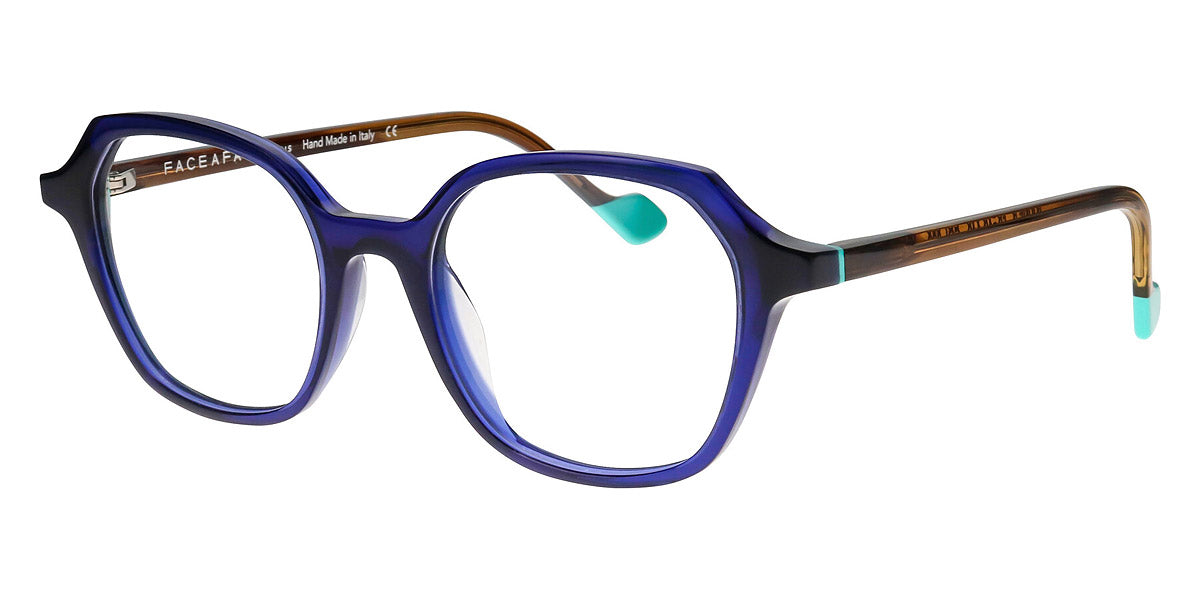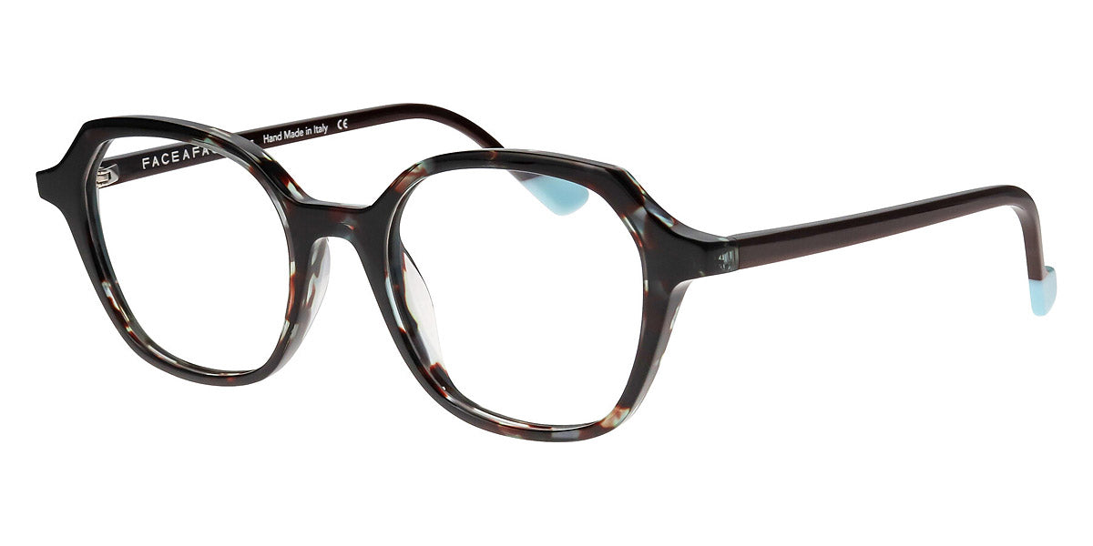 Tortoise Acajou Blue (0078) Eyeglasses (DJUNE 2 0078 50) by Face à Face™. Size: 50-19-140, Shape: Cat-Eye, Material: Acetate.