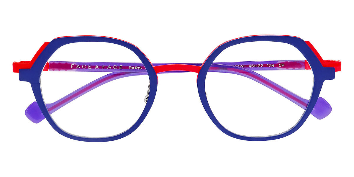 Metalized Flashy Blue (9009) Eyeglasses (MEMFIS 1 9009 46) by Face à Face™. Size: 46-22-134, Shape: Cat-Eye, Material: Acetate and Stainless Steel.