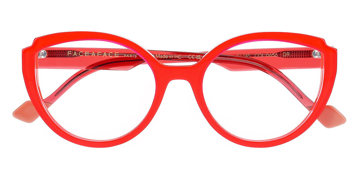 Rose Fuchsia/Orange (0656) Eyeglasses (NOOKS 2 0656 54) by Face à Face™. Size: 54-19-145, Shape: Cat-Eye, Material: Acetate.