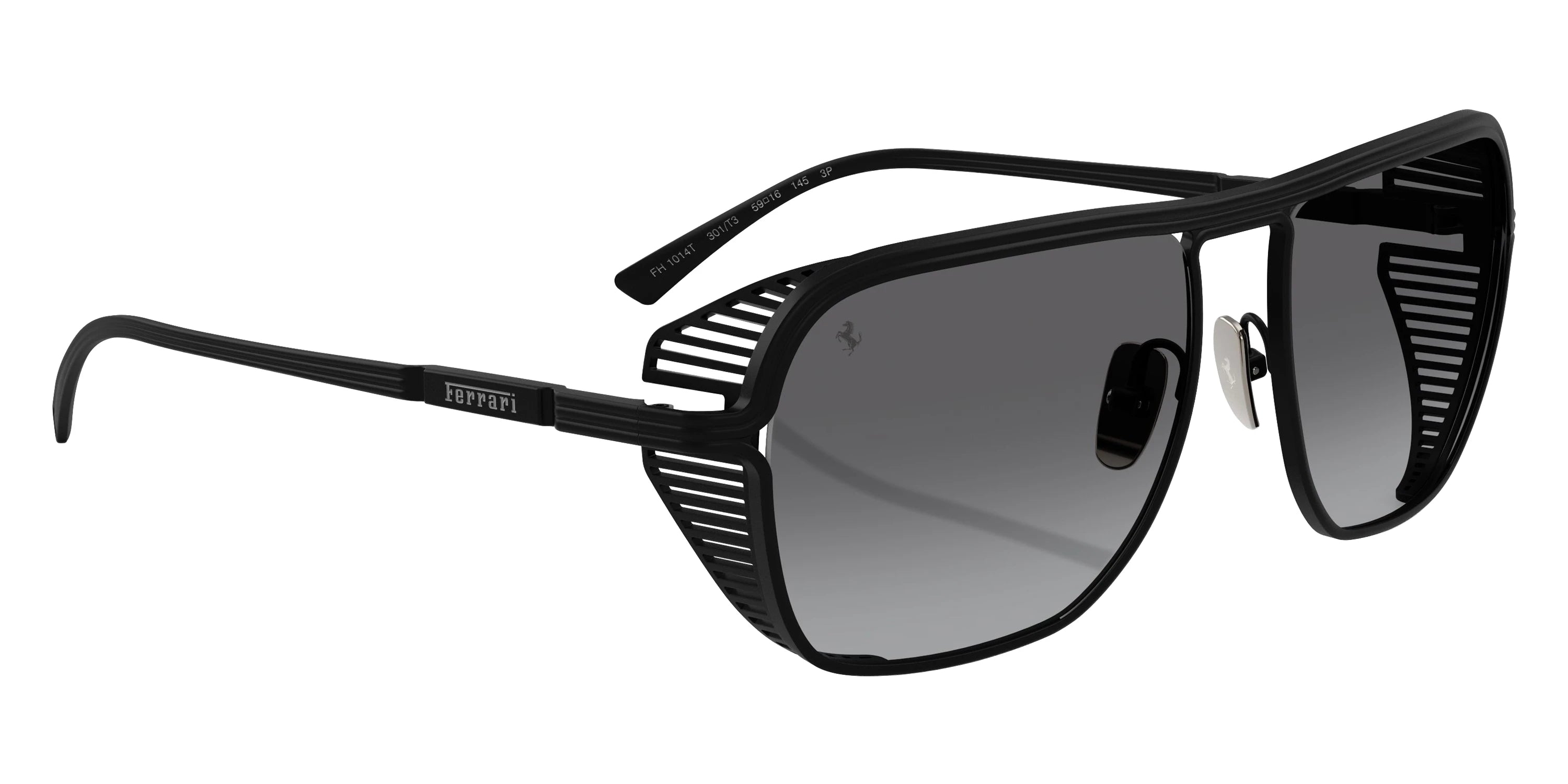 Matte Black (301/T3) Sunglasses with Gray Gradient Polarized lenses (FH1014T 301/T3 59) by FERRARI™. Size: 59-16-145, Shape: Square, Material: Titanium.