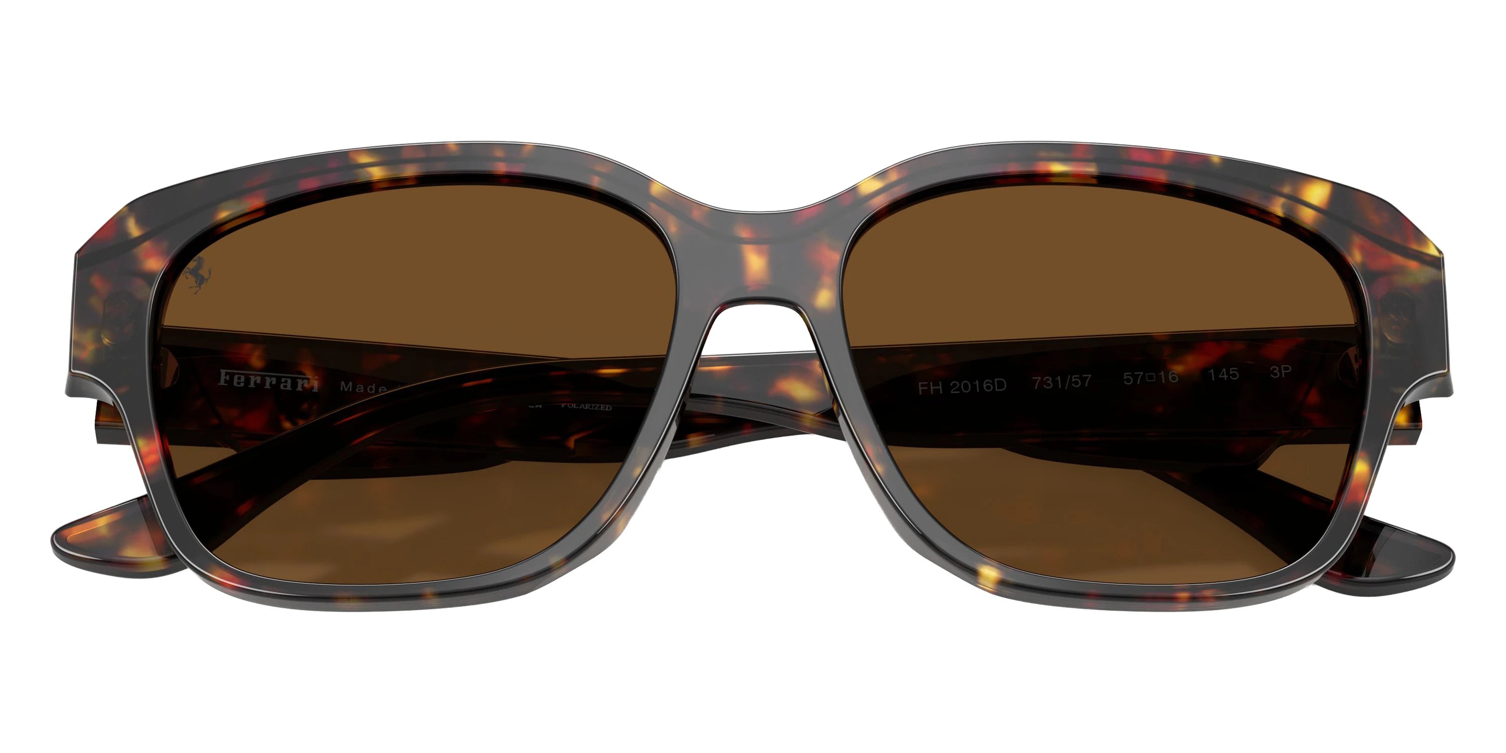 Yellow Tortoise (731/57) Sunglasses with Brown Polarized lenses (FH2016D 731/57 57) by FERRARI™. Size: 57-16-145, Shape: Square, Material: Acetate.
