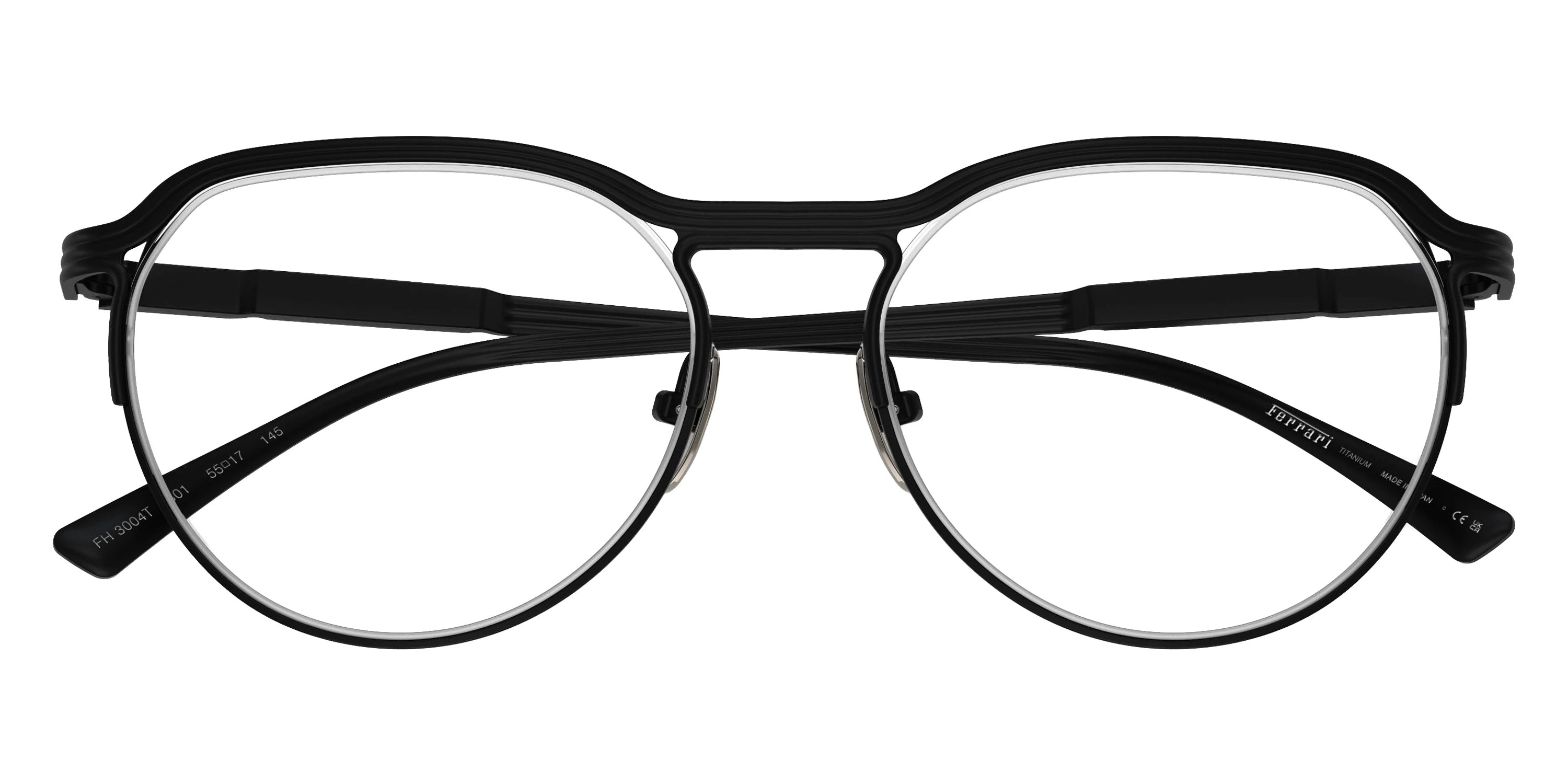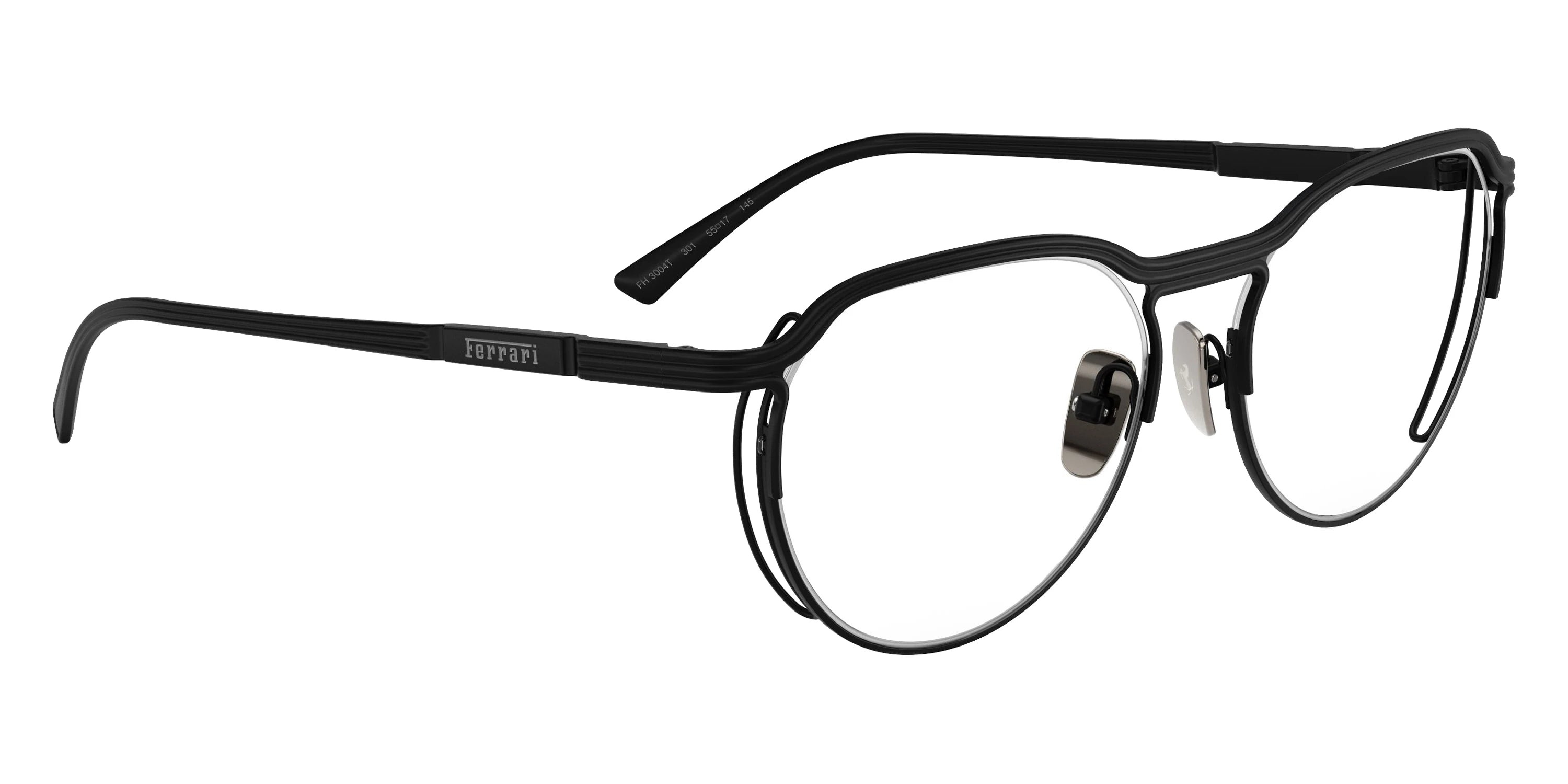Matte Black (301) Eyeglasses (FH3004T 301 53) by FERRARI™. Size: 53-17-145, Shape: Oval, Material: Titanium.